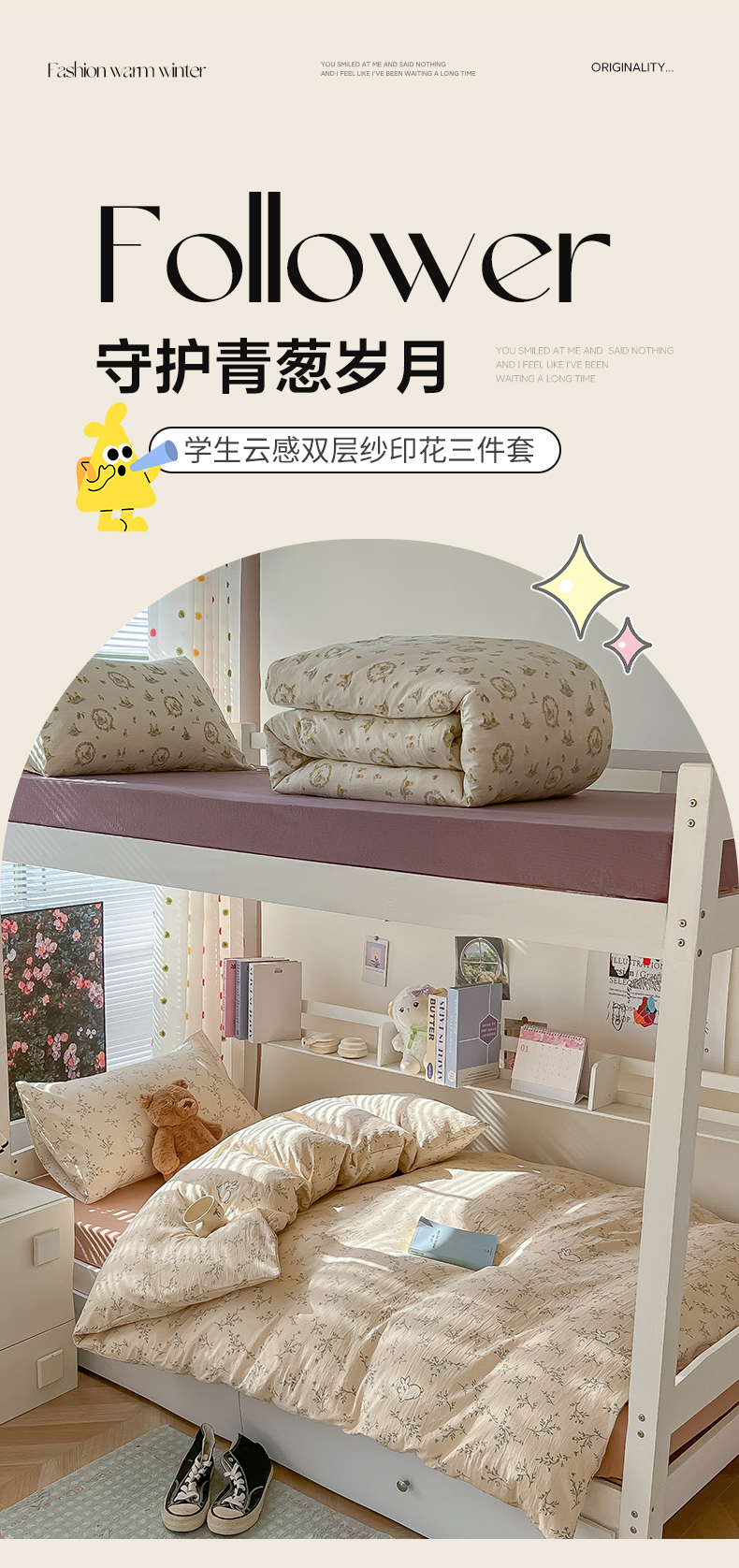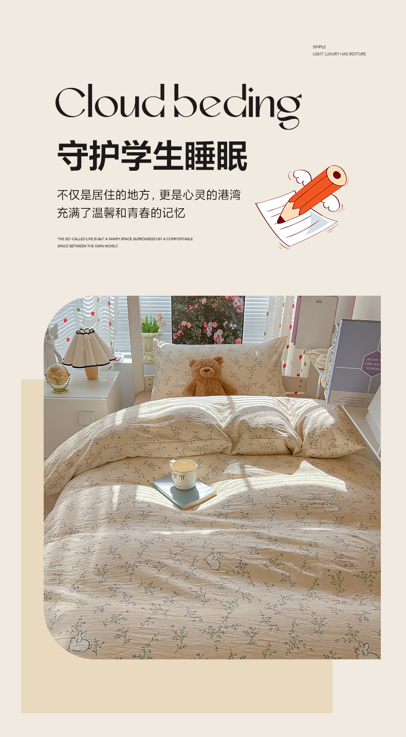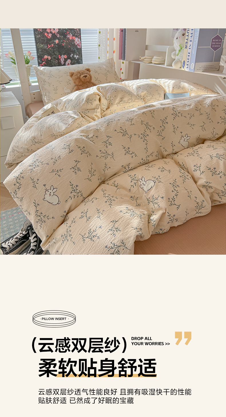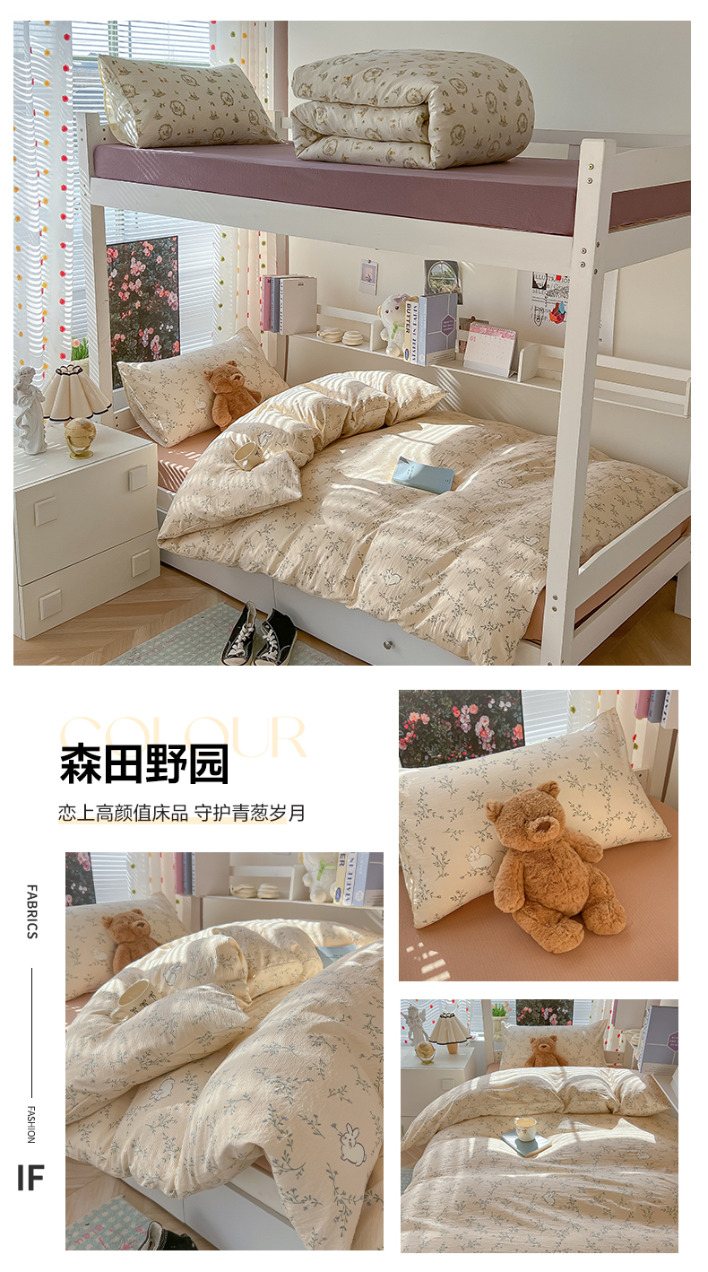 当前位置: 91家纺网 > 商品网购 > 床品套件 > 三件套 > 韩巢家纺 2025新款云感双层纱超柔裸睡级学生宿舍上下铺床单被套三件套-(提供卖家秀) 森田野园