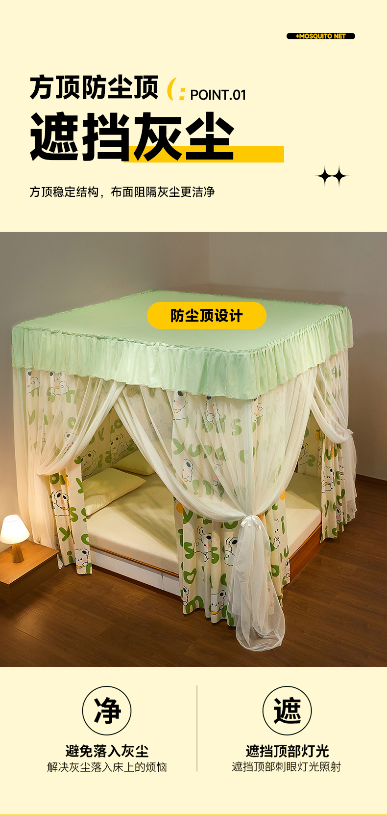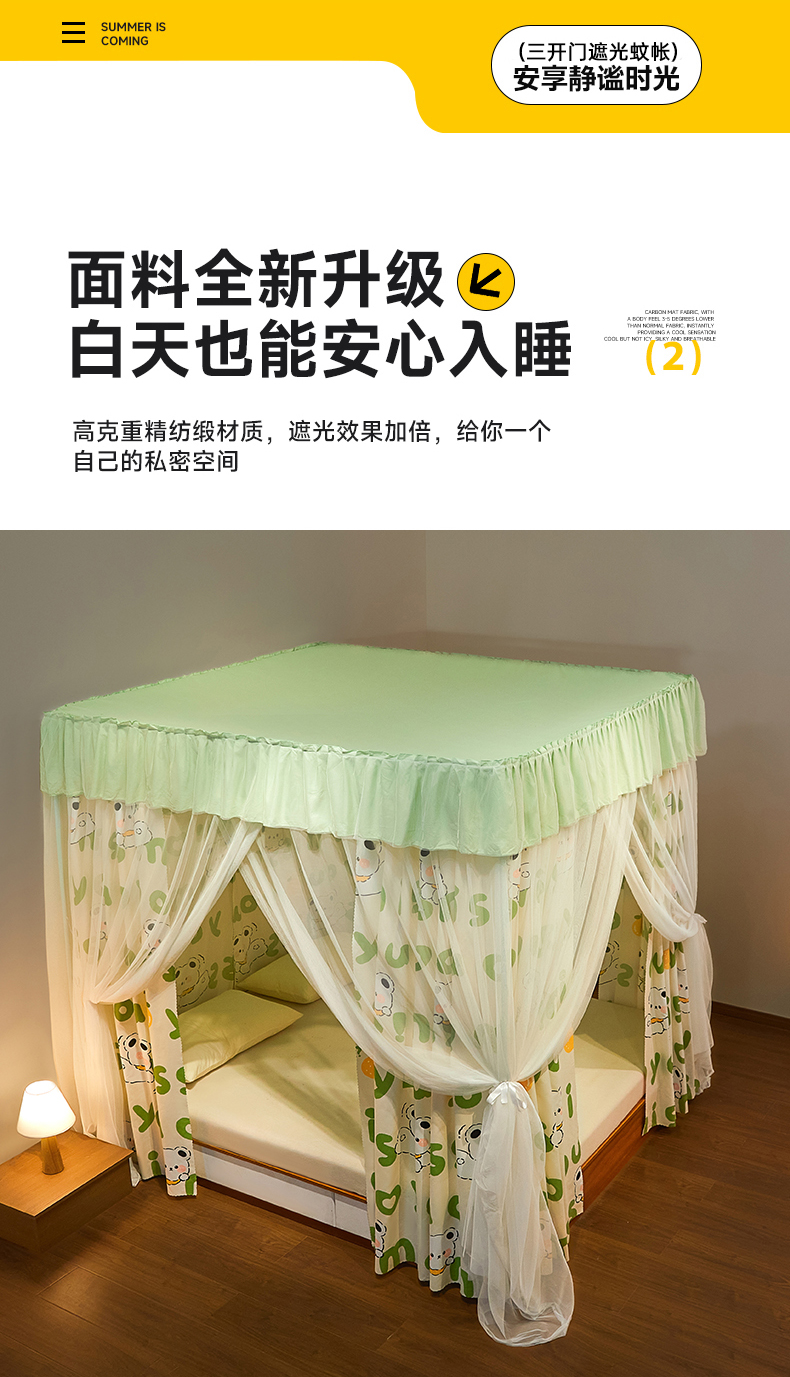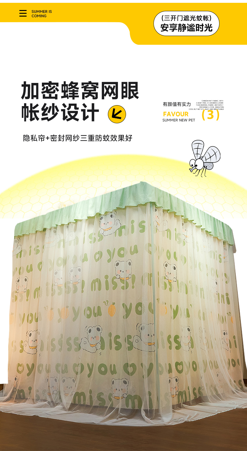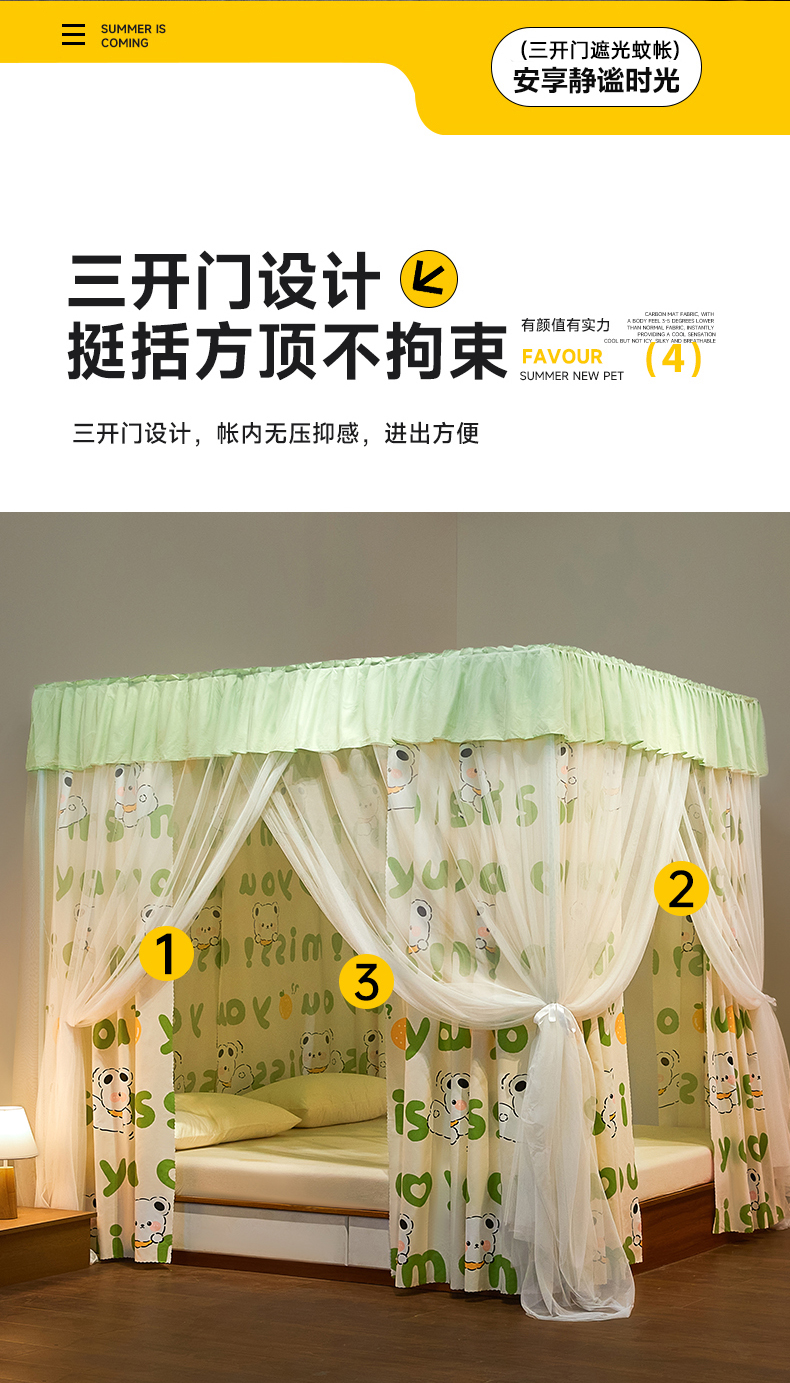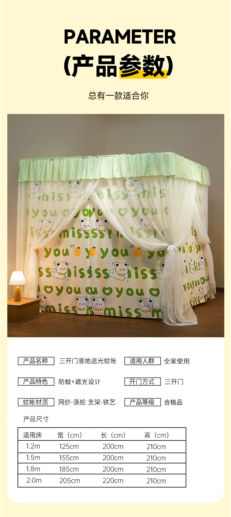 (总)飞轮海蚊帐 2025新款三开门遮光蚊帐LX-1,绿叶仙踪,奶油黄,香槟点点,元气桃,字母小熊