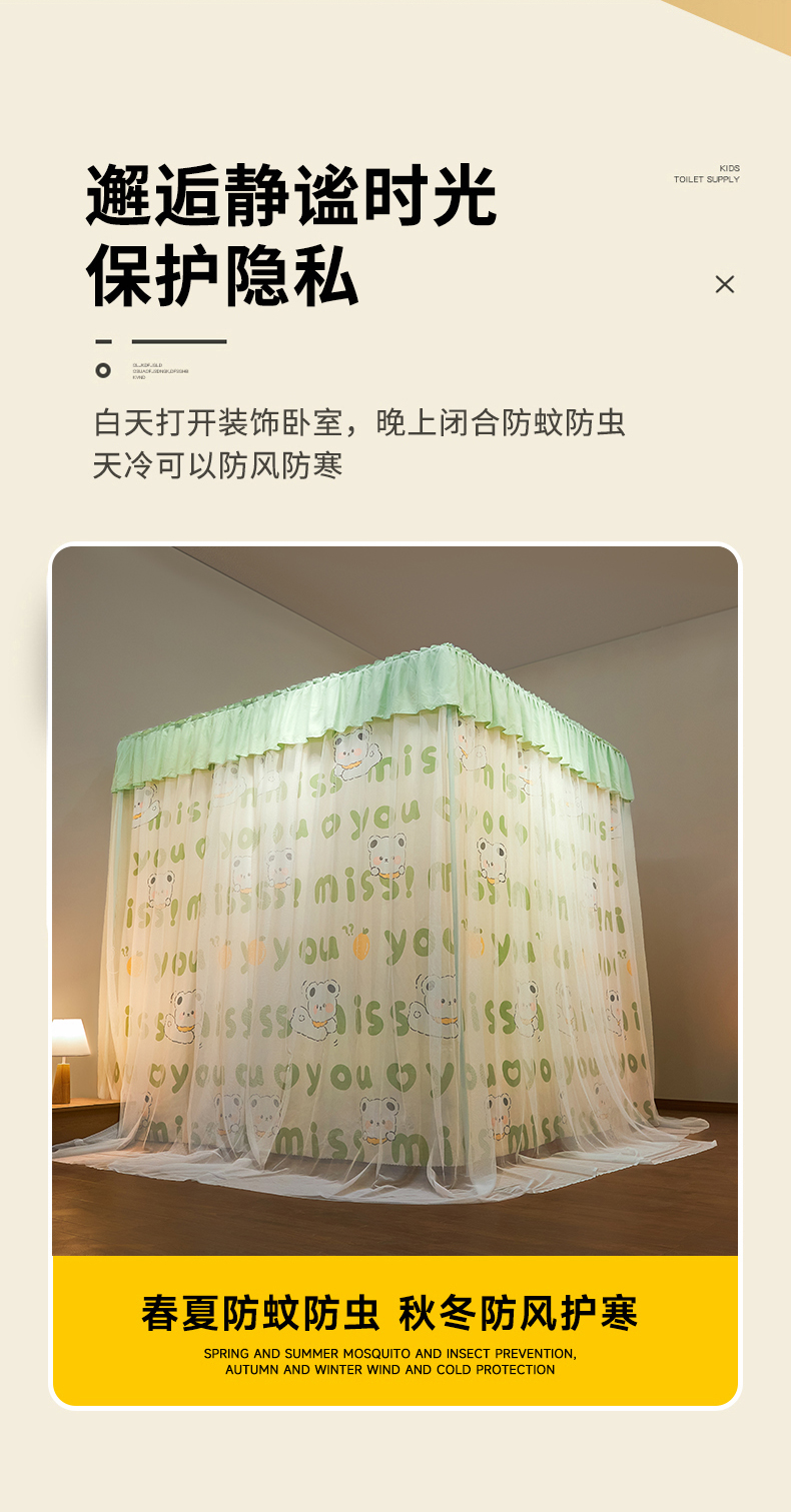 (总)飞轮海蚊帐 2025新款三开门方顶花边防摔遮光蚊帐-Z39,你好蛙,不许动,快乐家族,生活有趣,熊猫宝