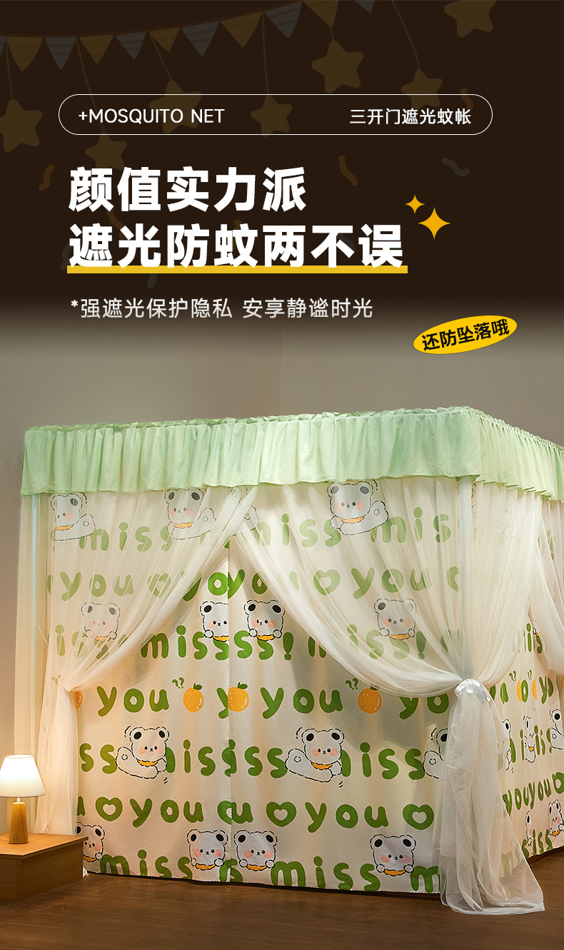 飞轮海蚊帐 2025新款强遮光防蚊学生蚊帐-XZ-99(靠墙帘选配)熊猫宝,熊猫宝