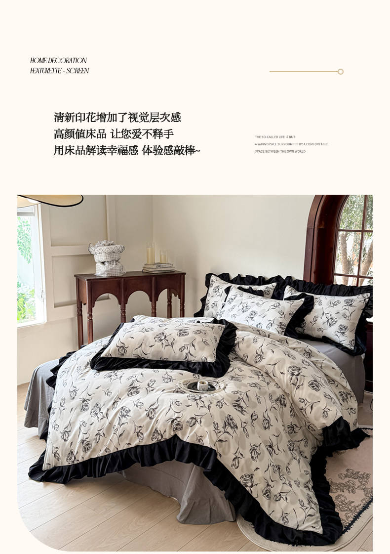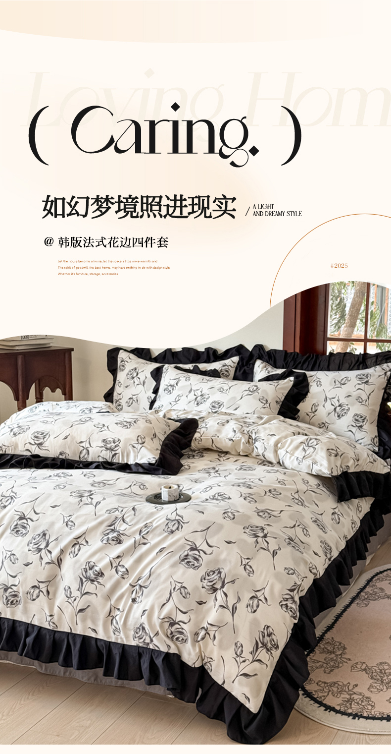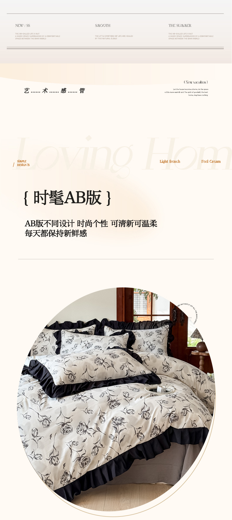 当前位置: 91家纺网 > 商品网购 > 床品套件 > 四件套 > 化纤活性四件套 > 晚爱 2025新款法式花边水洗棉四件套赫本风韩版针织云朵棉三件套 法式风-玫瑰