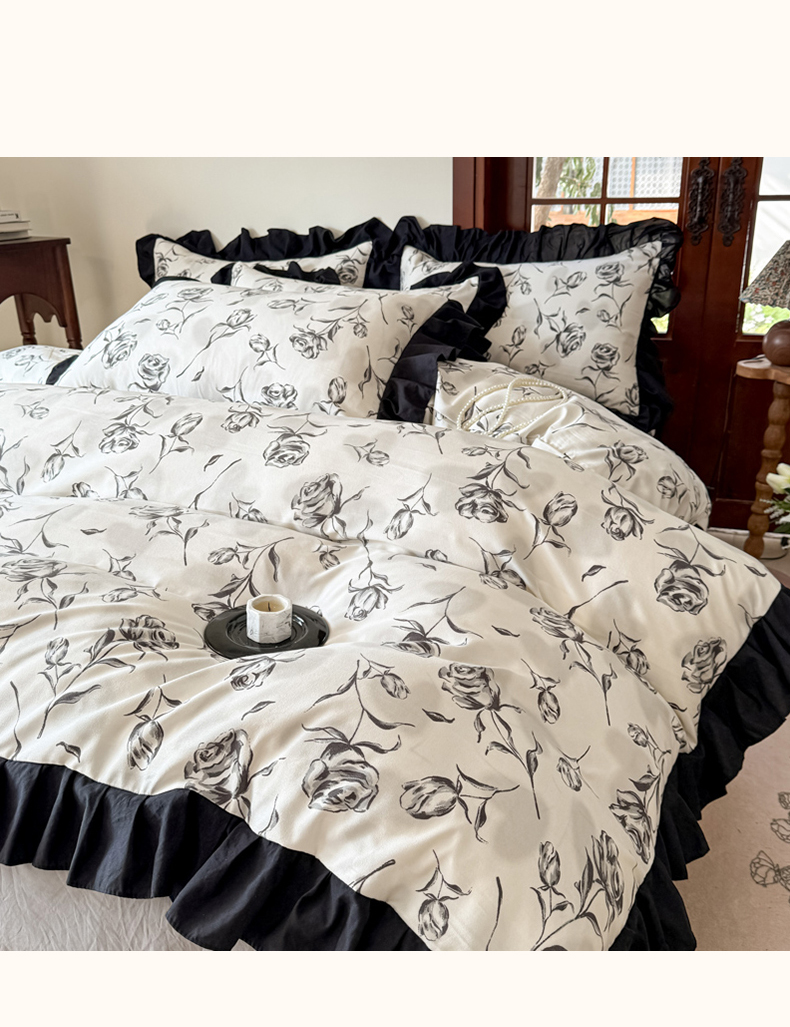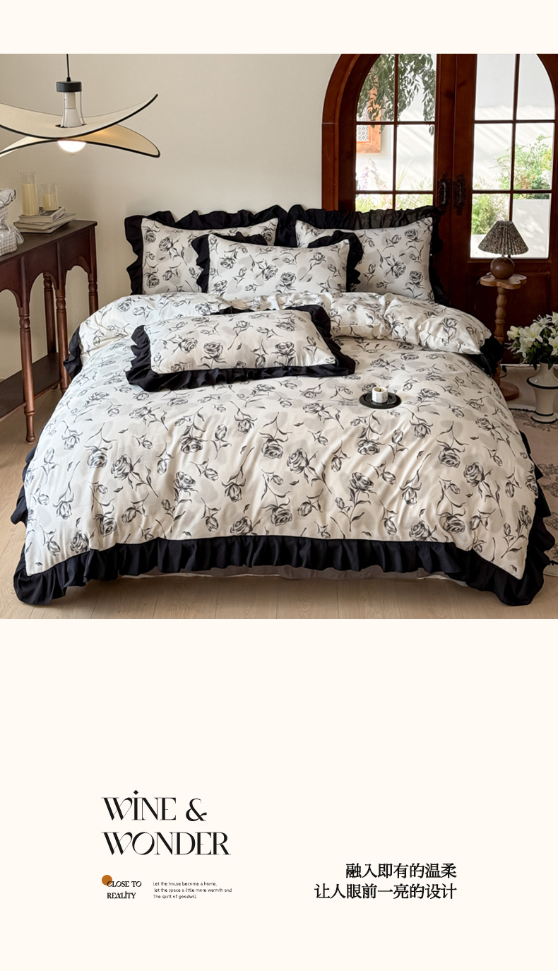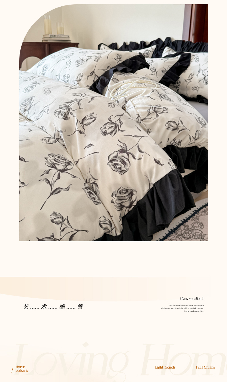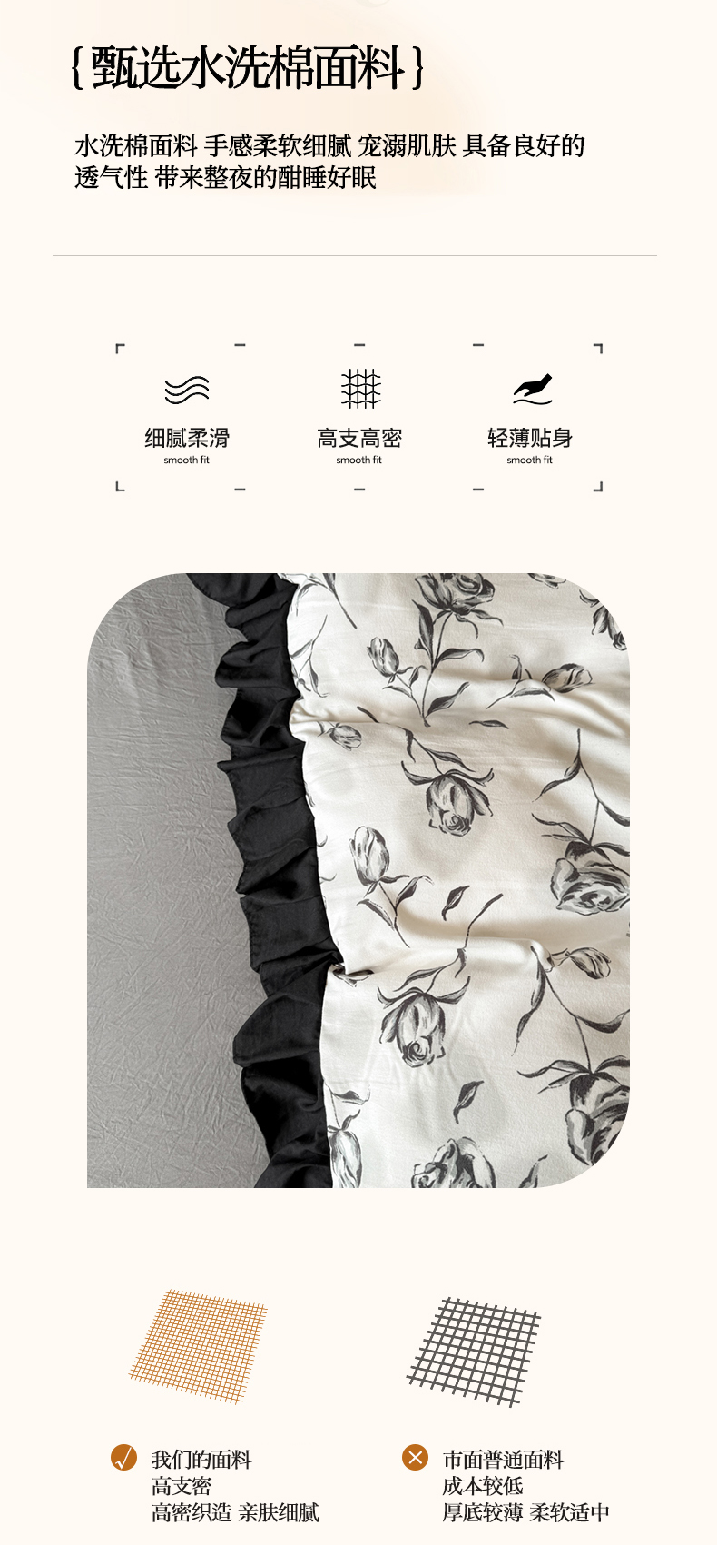 当前位置: 91家纺网 > 商品网购 > 床品套件 > 四件套 > 化纤活性四件套 > 晚爱 2025新款法式花边水洗棉四件套赫本风韩版针织云朵棉三件套 法式风-玫瑰