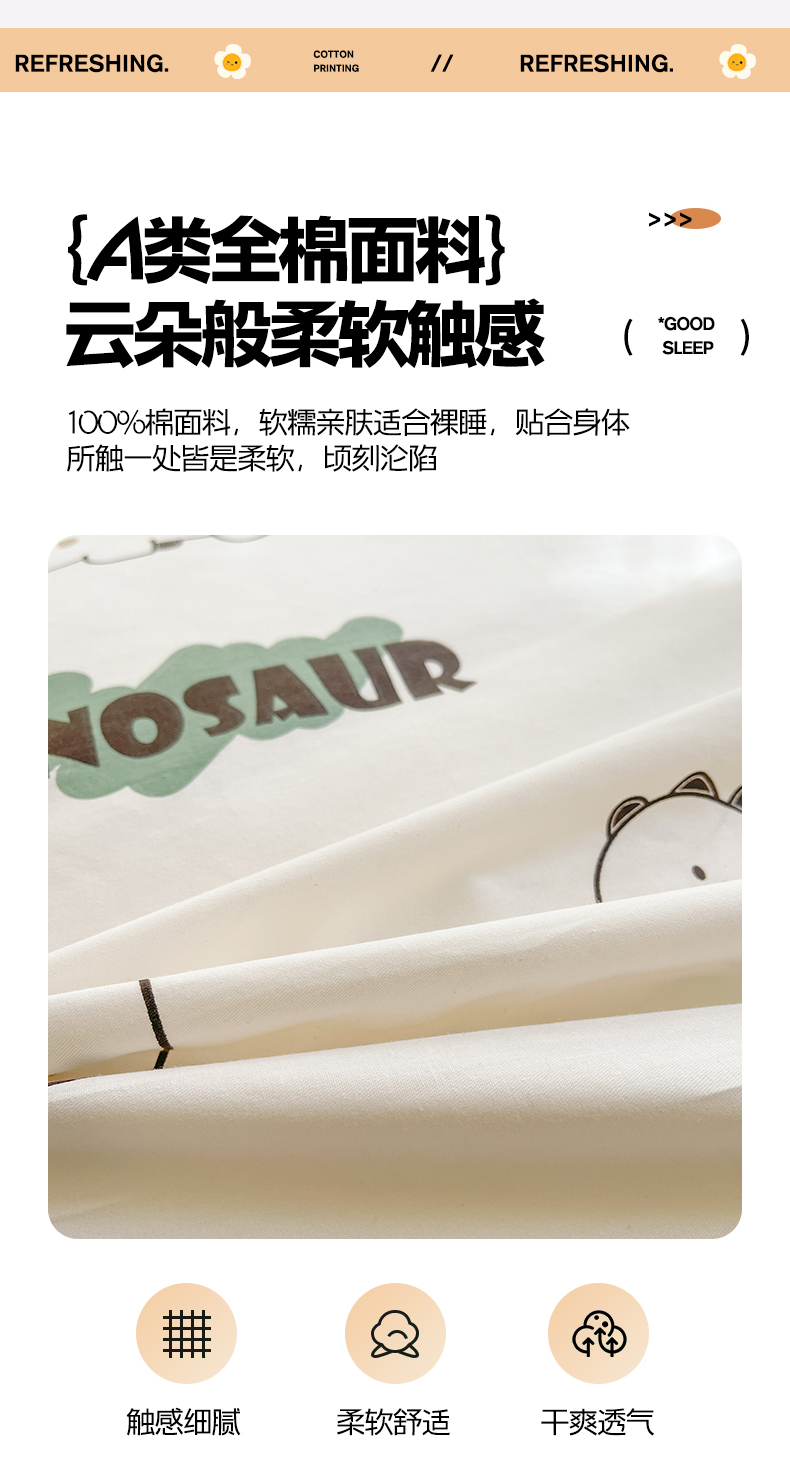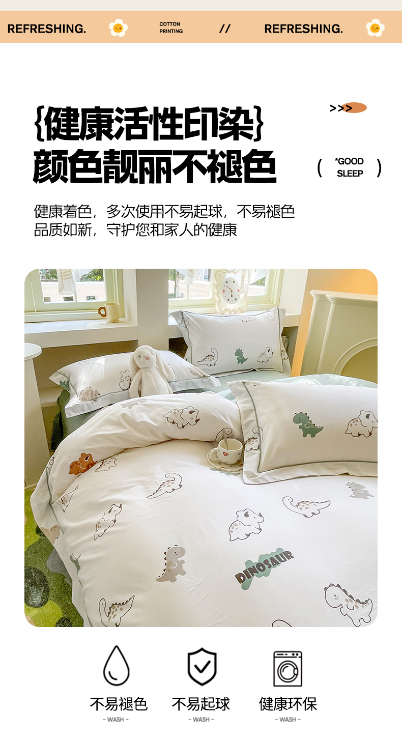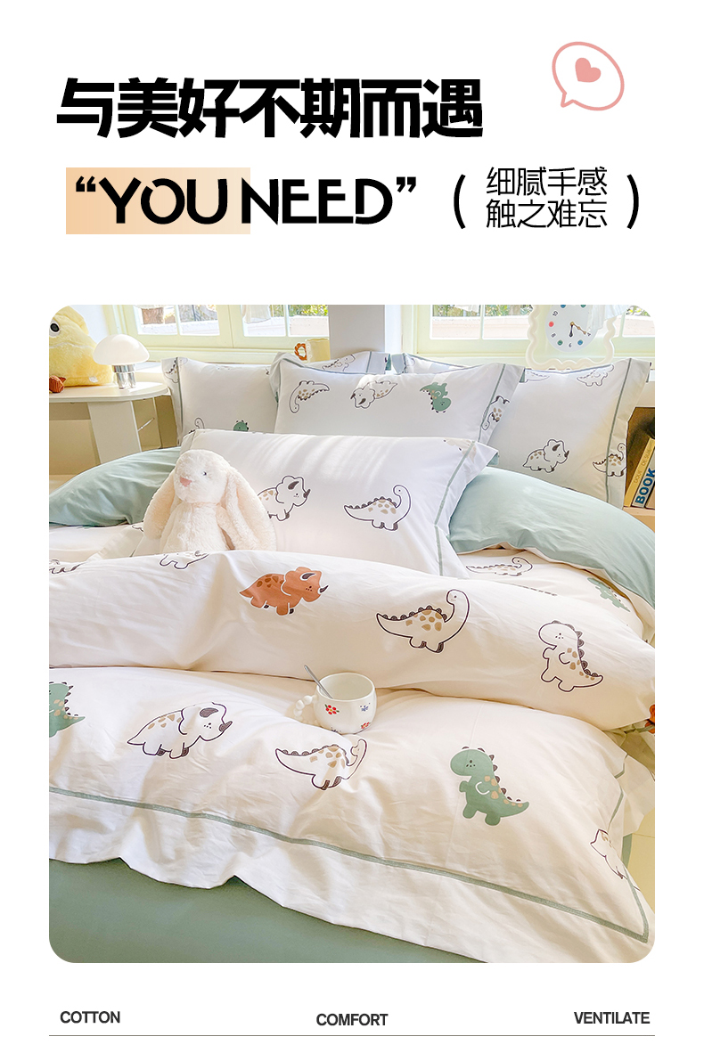 当前位置: 91家纺网 > 商品网购 > 床品套件 > 四件套 > 全棉普通四件套 > 7V 2025新款轻奢大宽边100%纯棉四件套133*76全棉喷气宽幅长绒棉被套床单床笠套件 侏罗纪