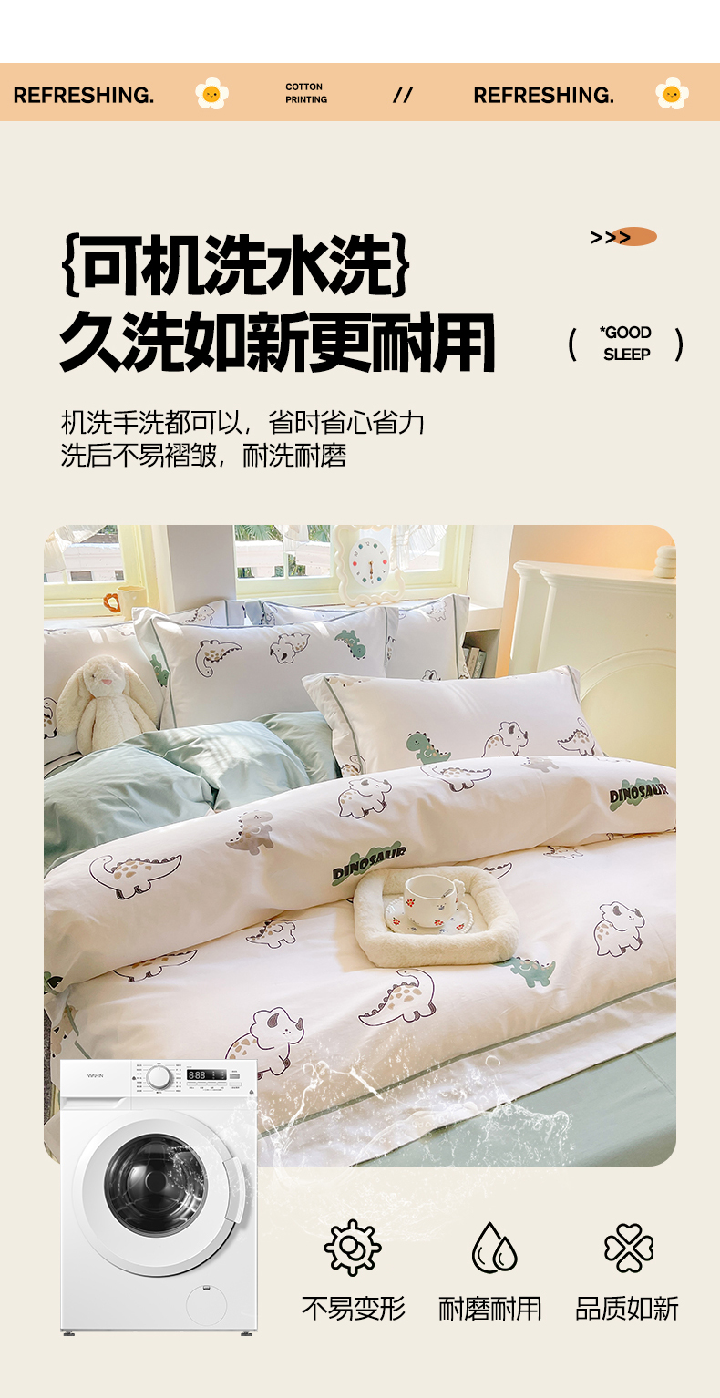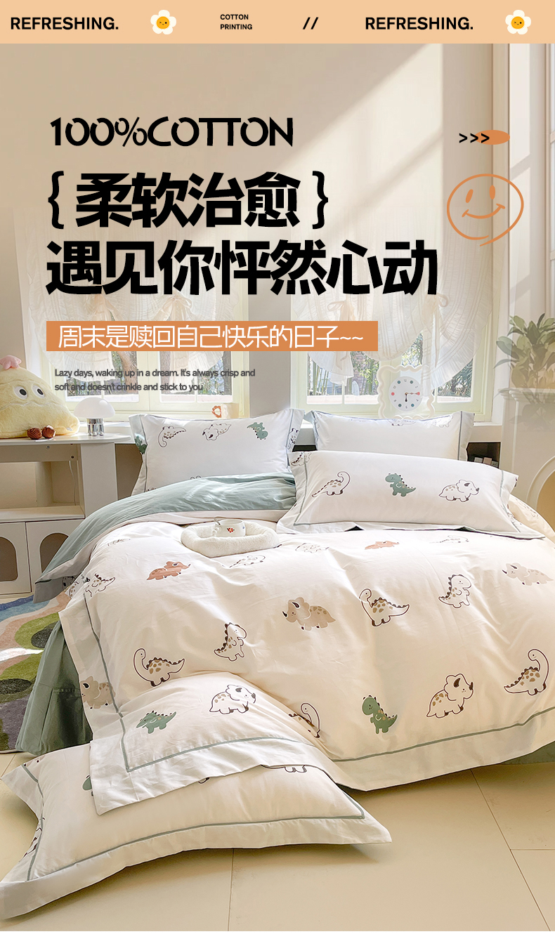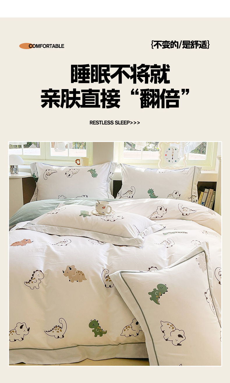 当前位置: 91家纺网 > 商品网购 > 床品套件 > 四件套 > 全棉普通四件套 > 7V 2025新款轻奢大宽边100%纯棉四件套133*76全棉喷气宽幅长绒棉被套床单床笠套件 侏罗纪