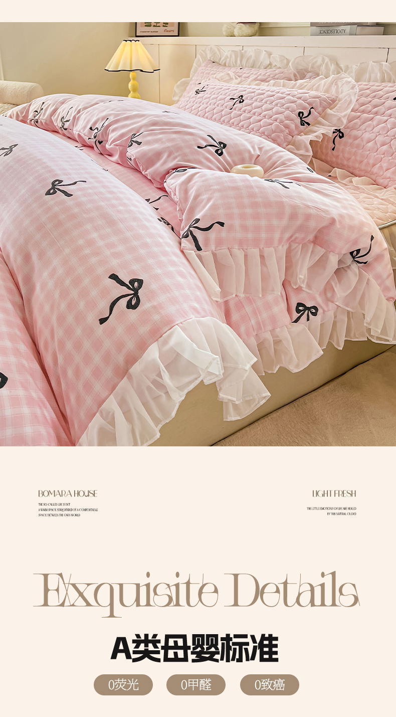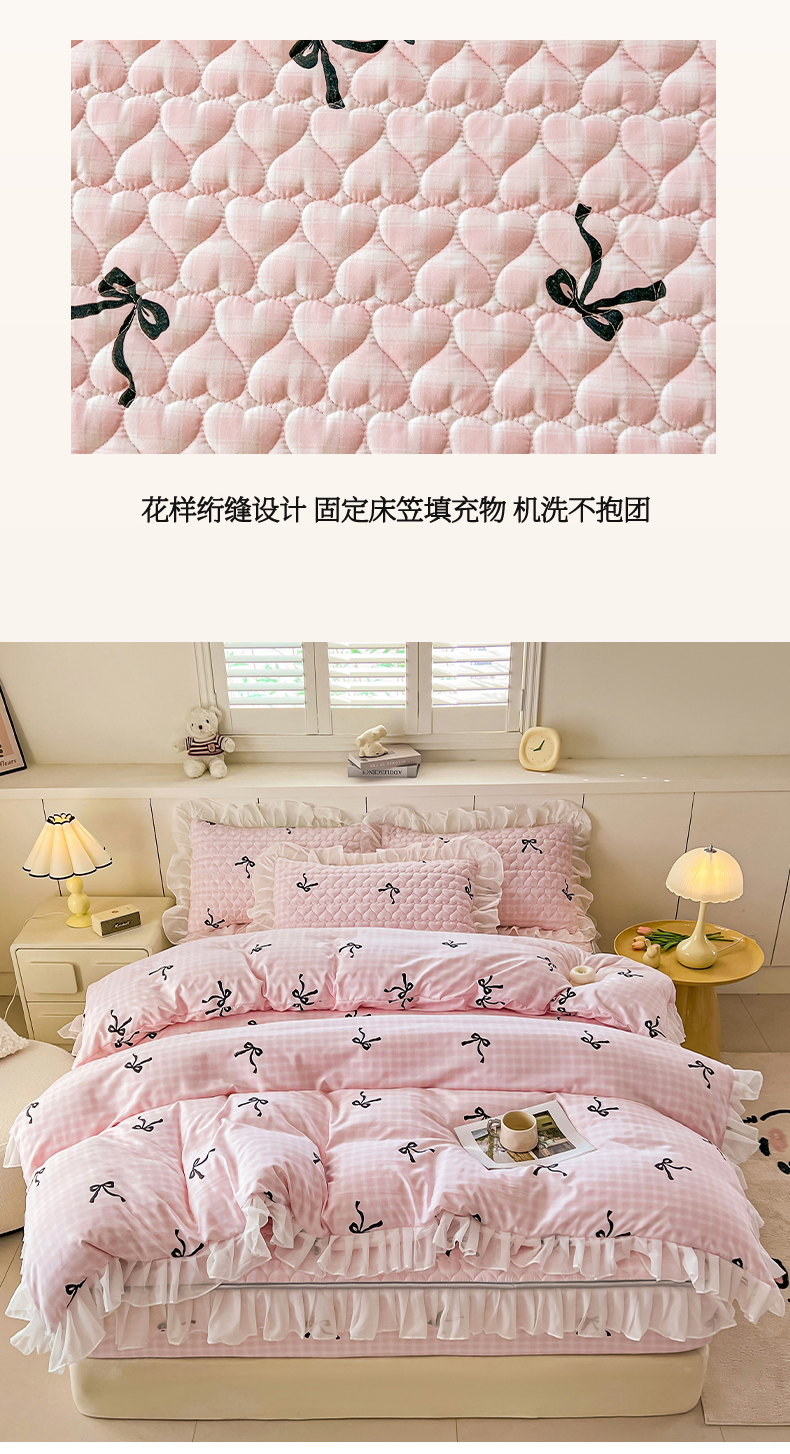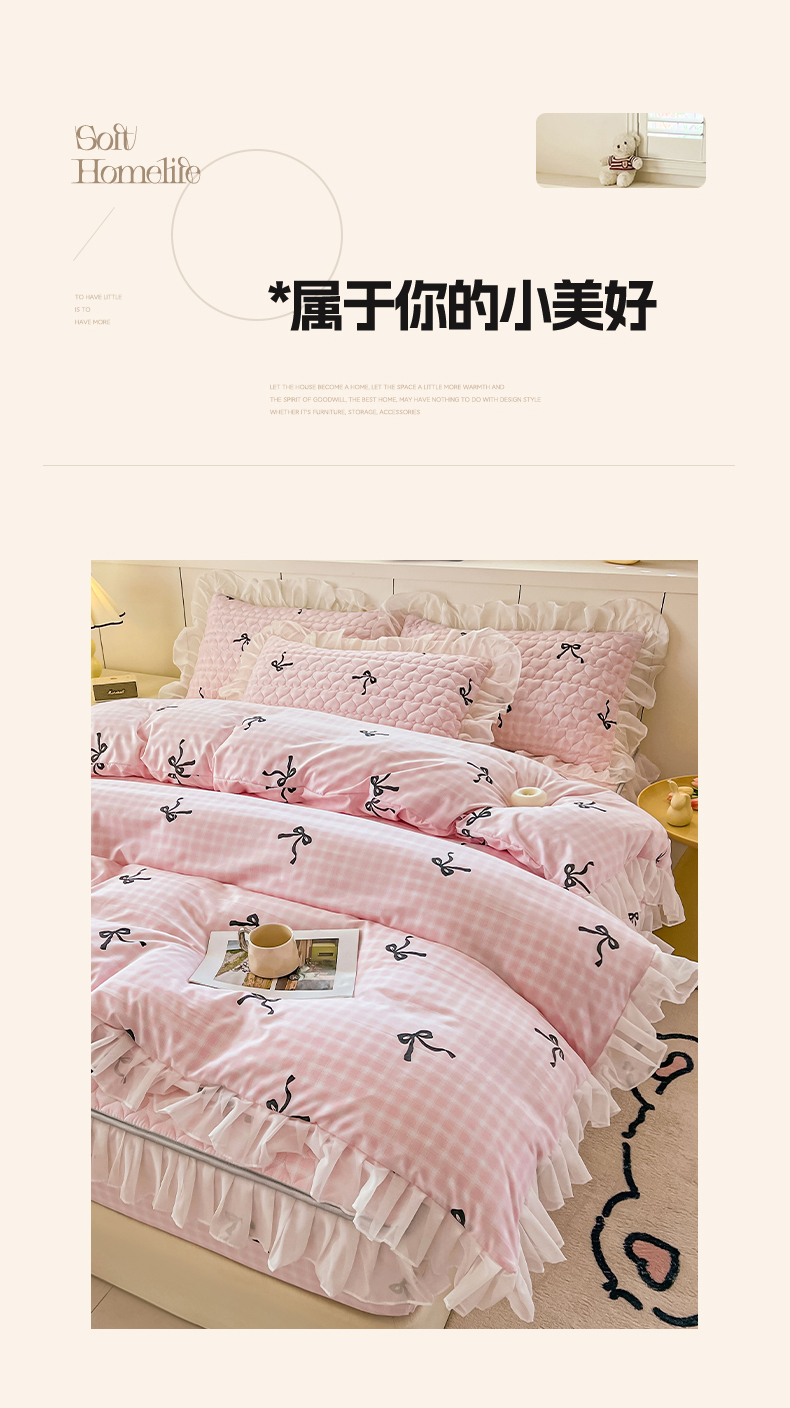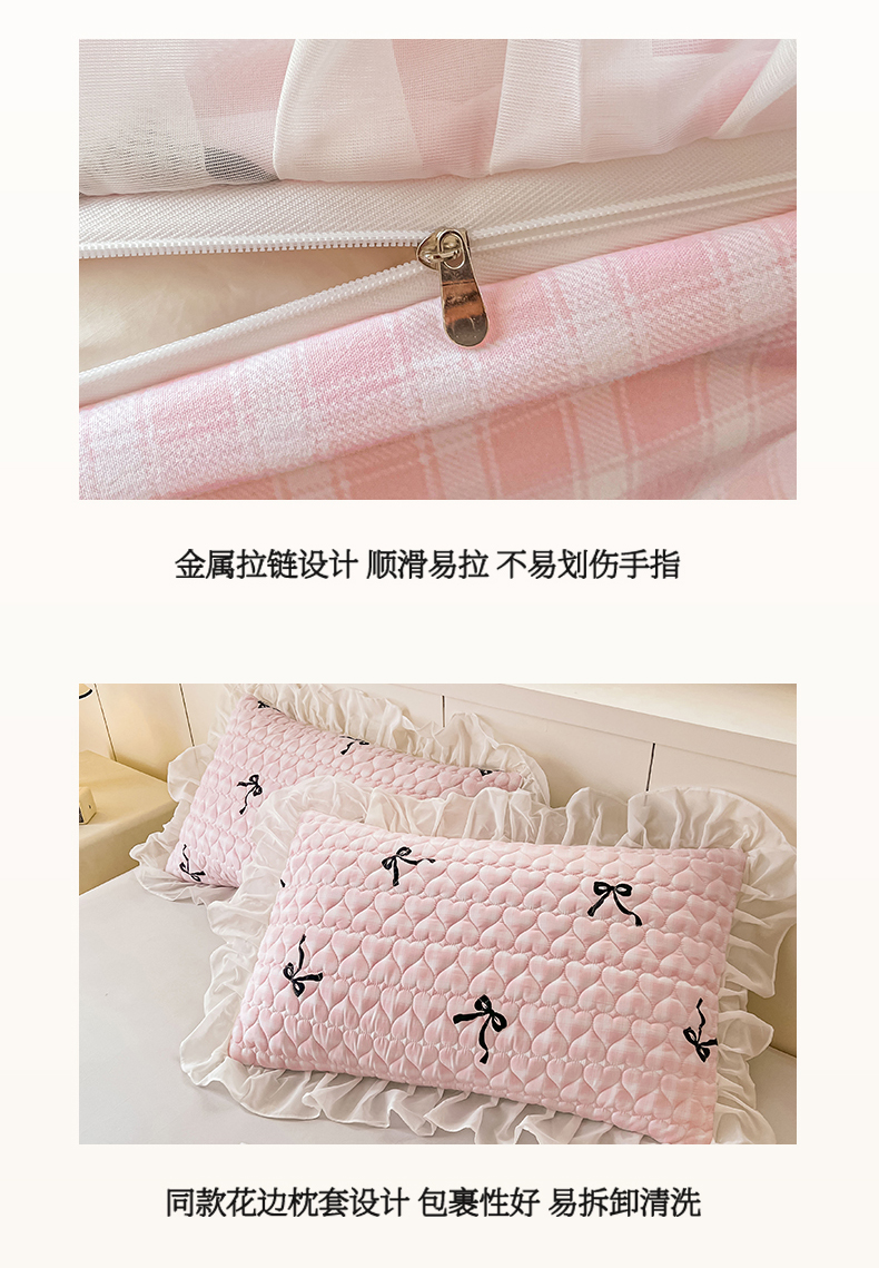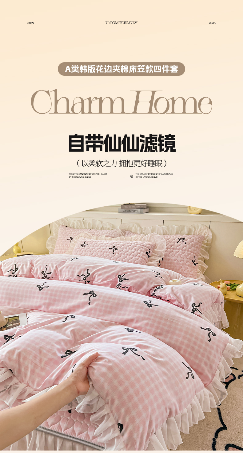 当前位置: 91家纺网 > 商品网购 > 床品套件 > 四件套 > 其它四件套 > 眠势力 2025新款韩版花边床笠款四件套雪纺公主风ins夹棉四季通用席梦思保护套 粉格蝴蝶结