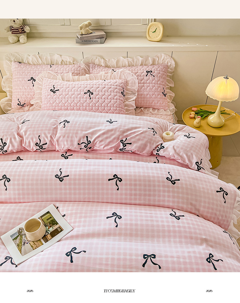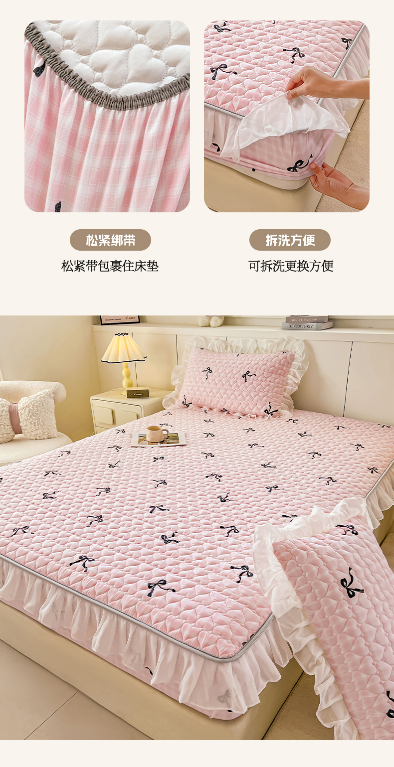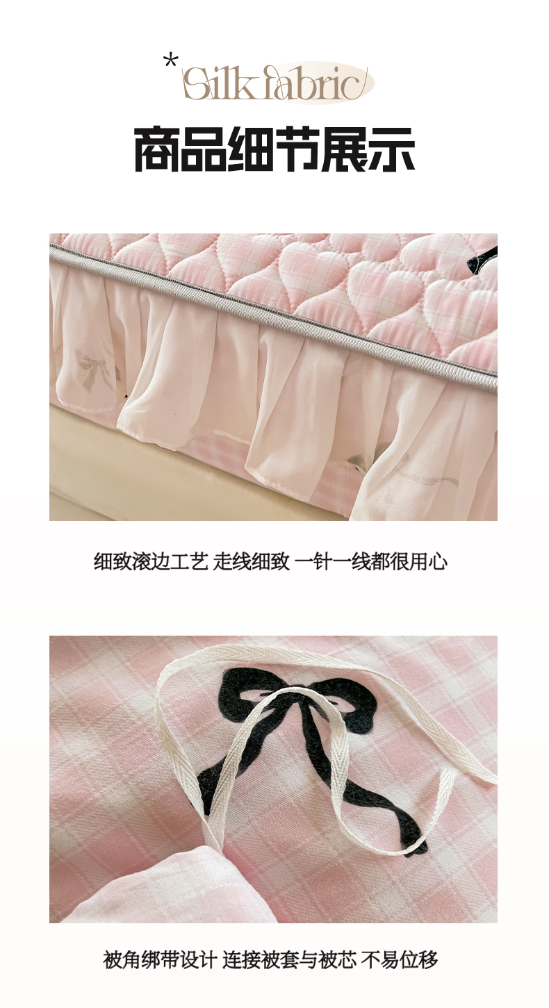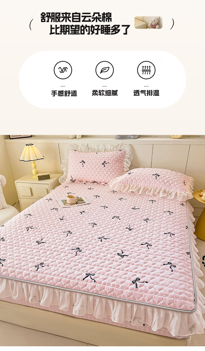 当前位置: 91家纺网 > 商品网购 > 床品套件 > 四件套 > 其它四件套 > 眠势力 2025新款韩版花边床笠款四件套雪纺公主风ins夹棉四季通用席梦思保护套 粉格蝴蝶结