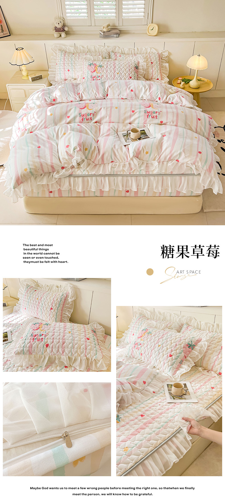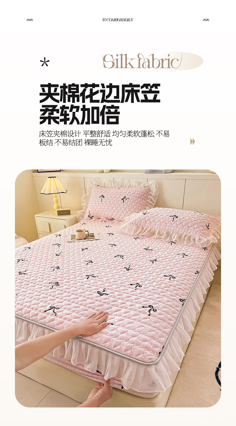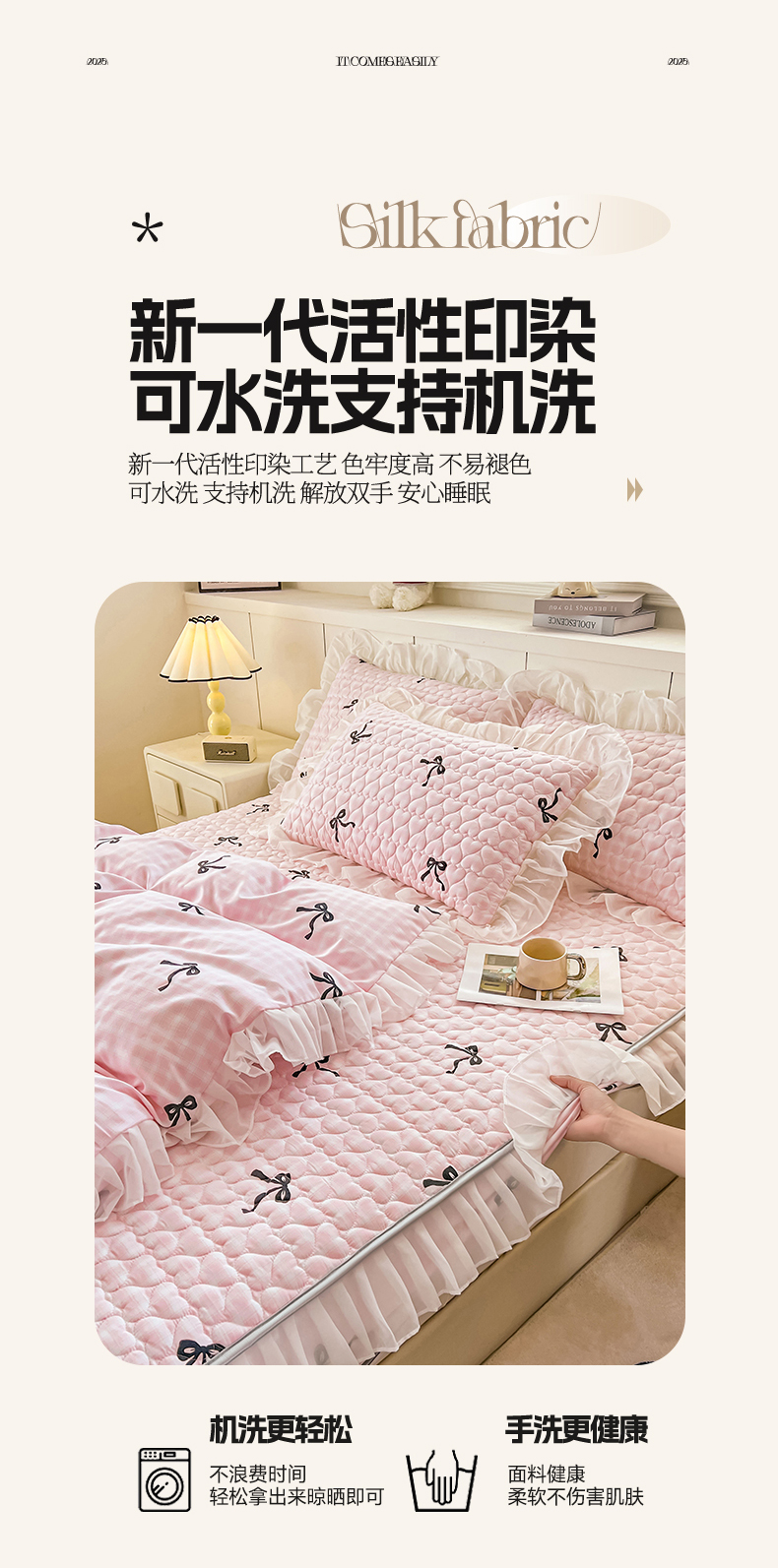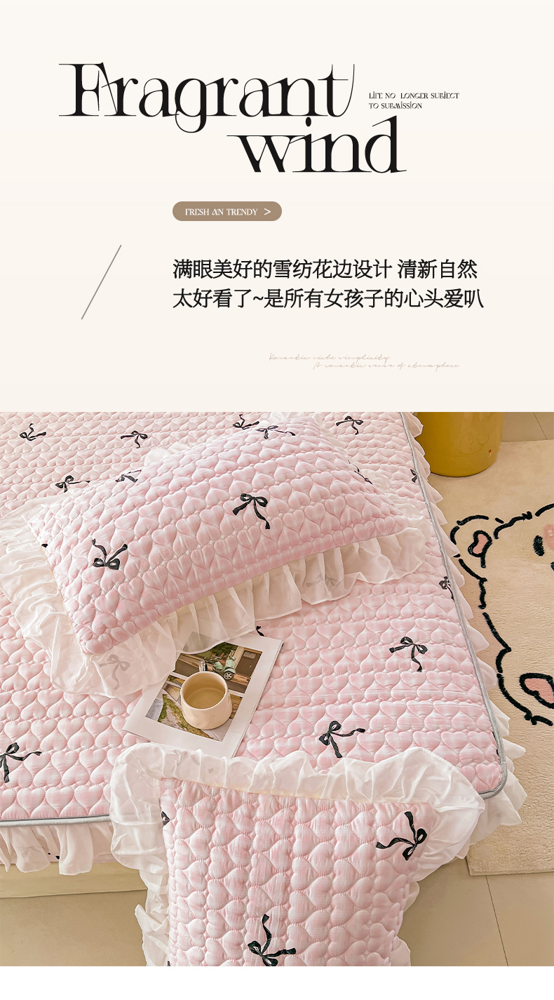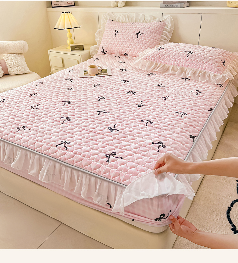 当前位置: 91家纺网 > 商品网购 > 床品套件 > 四件套 > 其它四件套 > 眠势力 2025新款韩版花边床笠款四件套雪纺公主风ins夹棉四季通用席梦思保护套 粉格蝴蝶结
