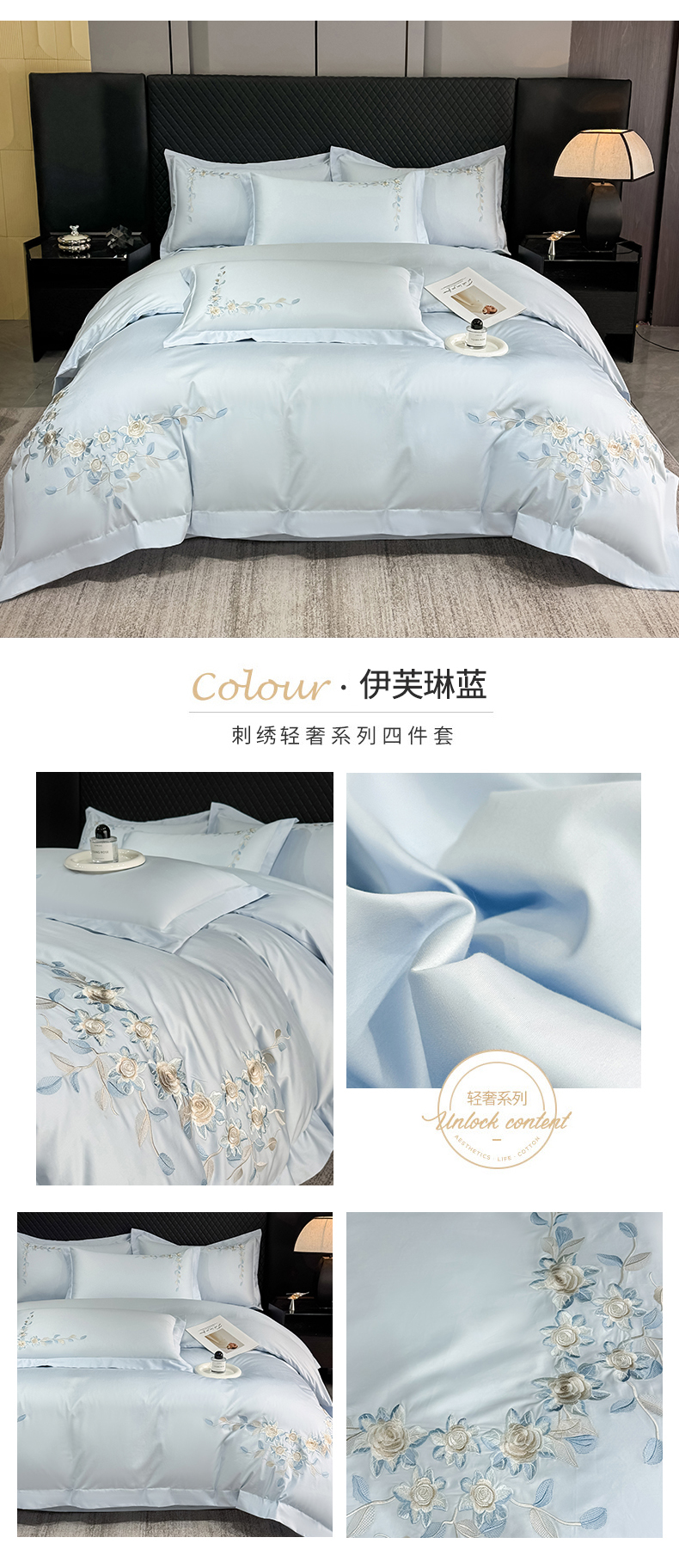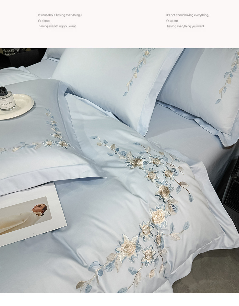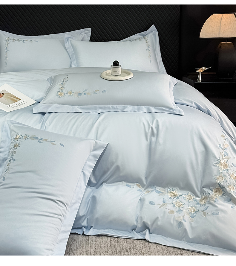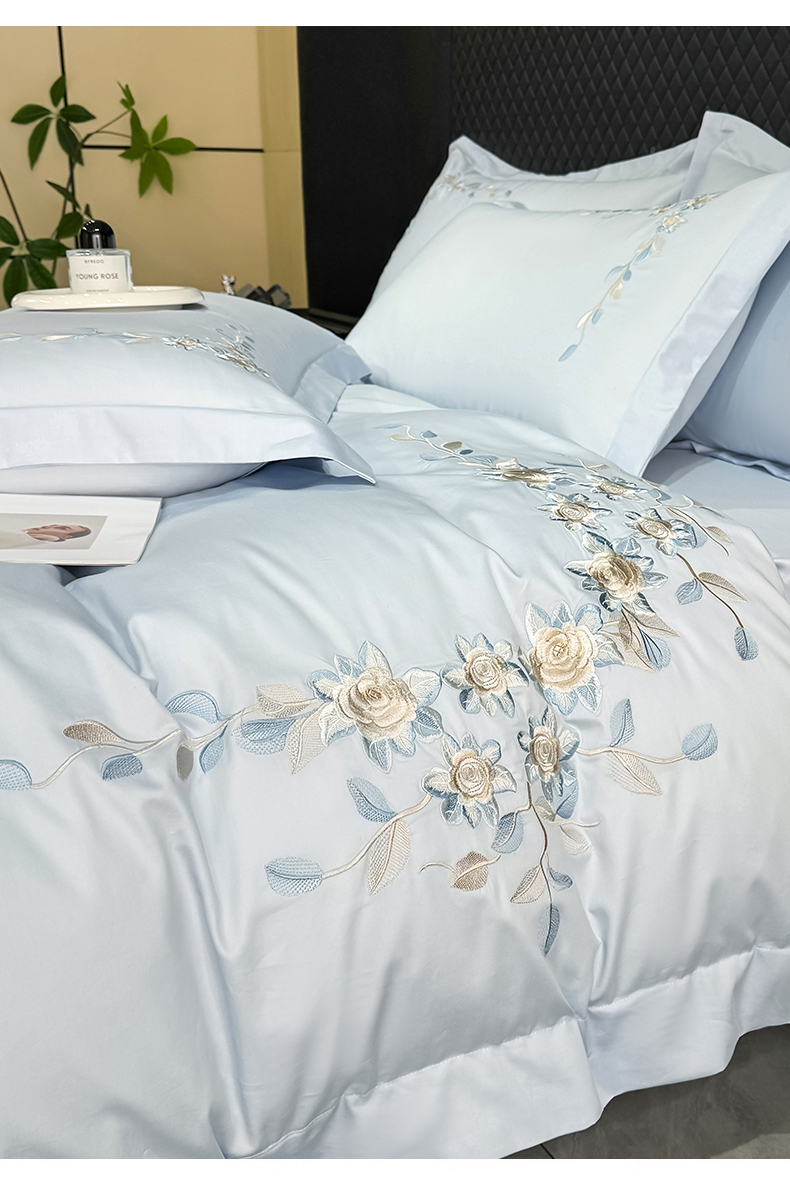 当前位置: 91家纺网 > 商品网购 > 床品套件 > 四件套 > 全棉普通四件套 > KA家纺2025春夏新款全棉绣花四件套 伊芙琳系列 伊芙琳蓝