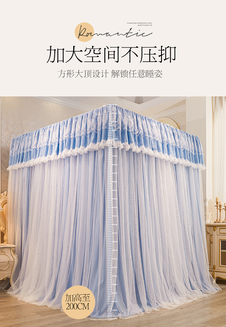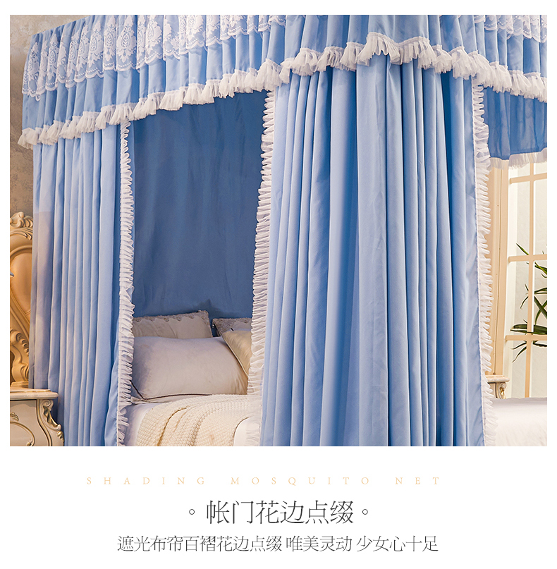 宝莱利 2025新款遮光布帘落地蚊帐 清新蓝