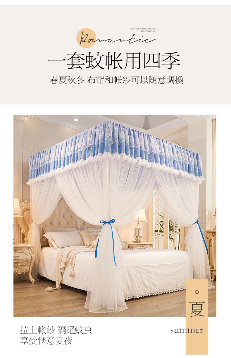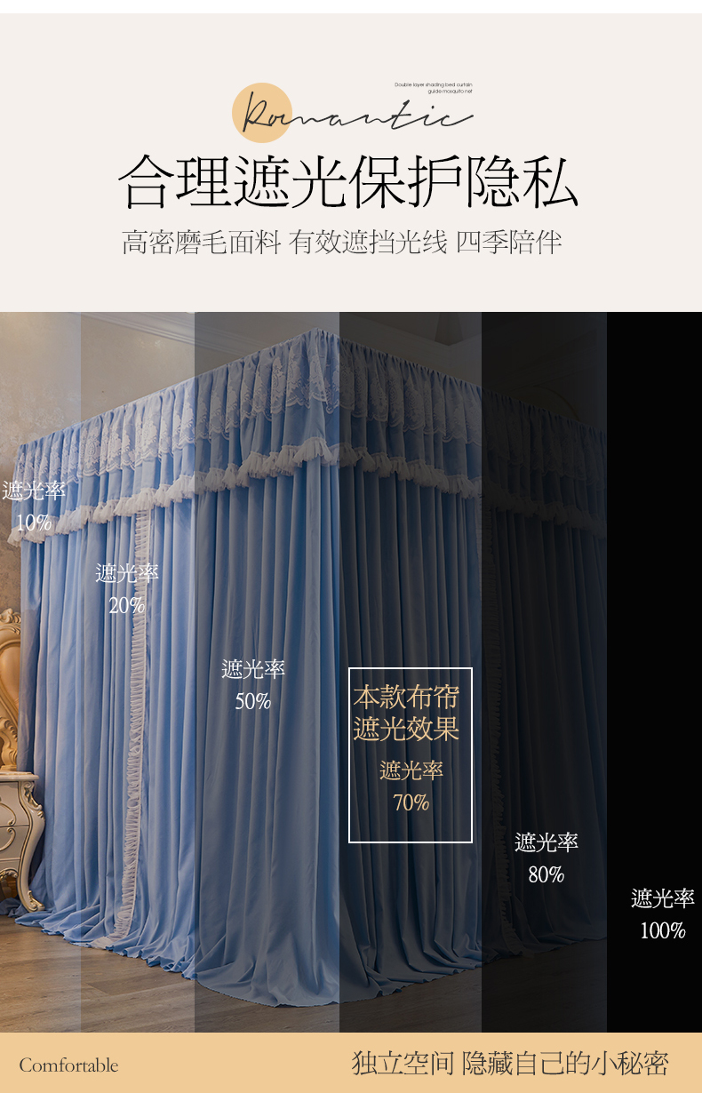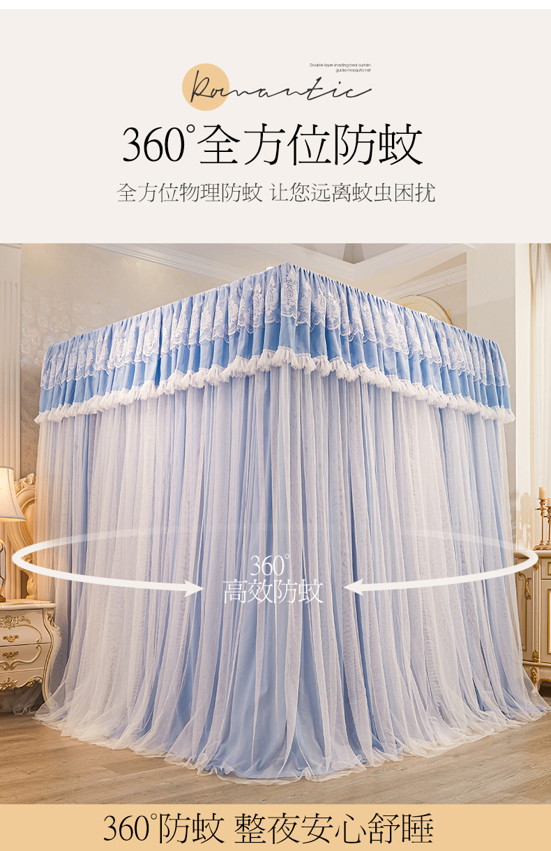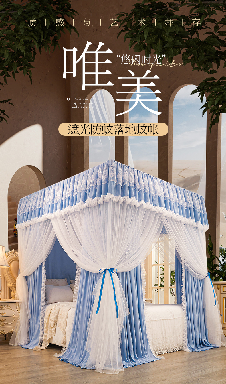 • 91家纺网 家纺一手货源 找家纺 宝莱利 2025新款遮光布帘落地蚊帐 清新蓝
