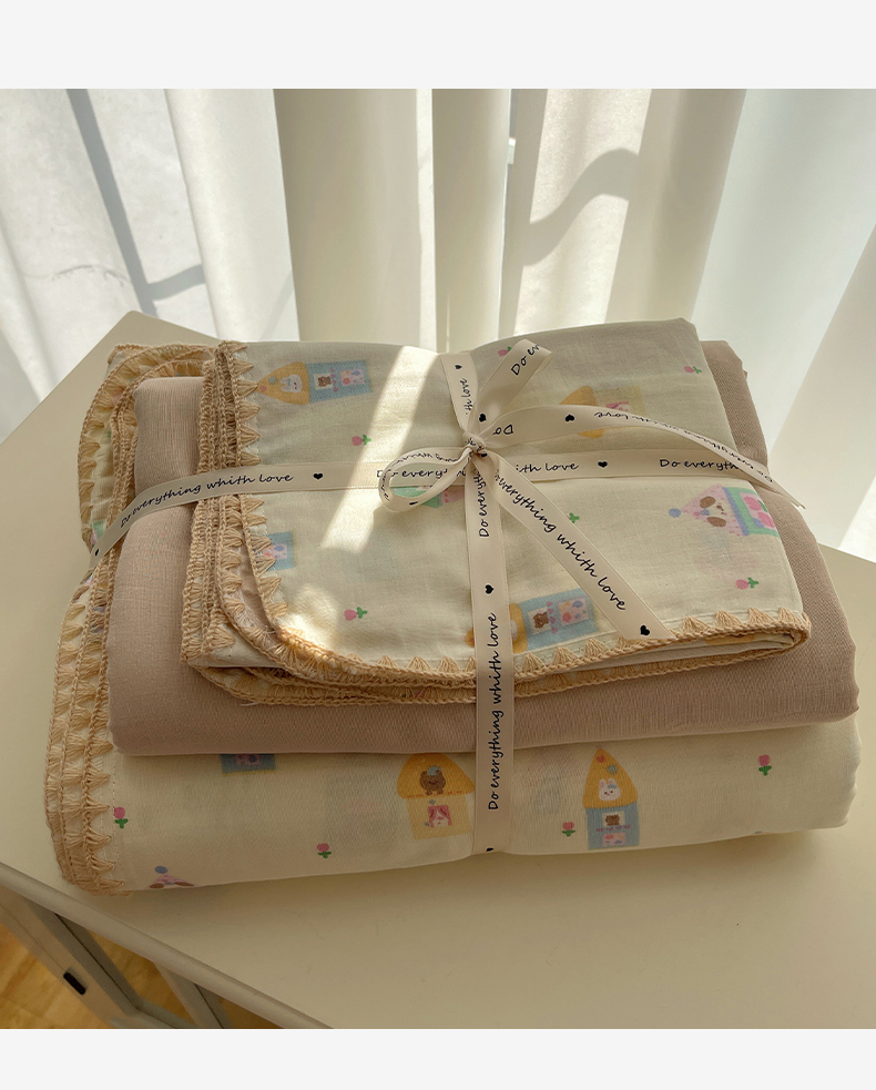 三朵 2025新款全棉双层纱三角针四件套 爱丁堡