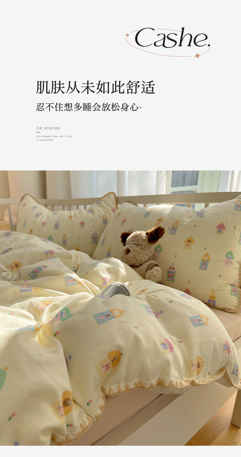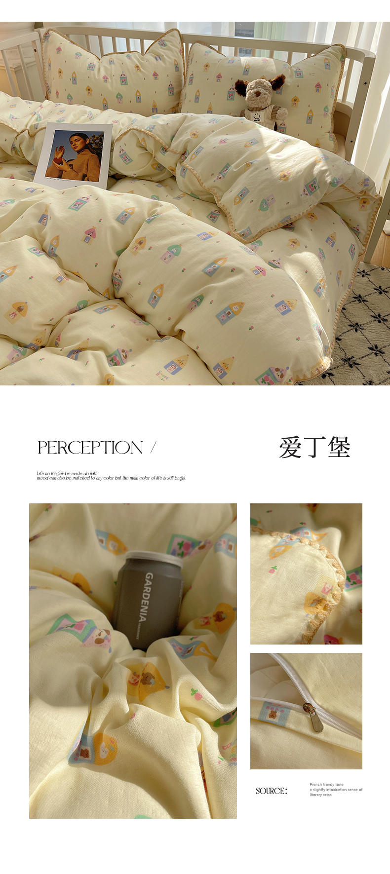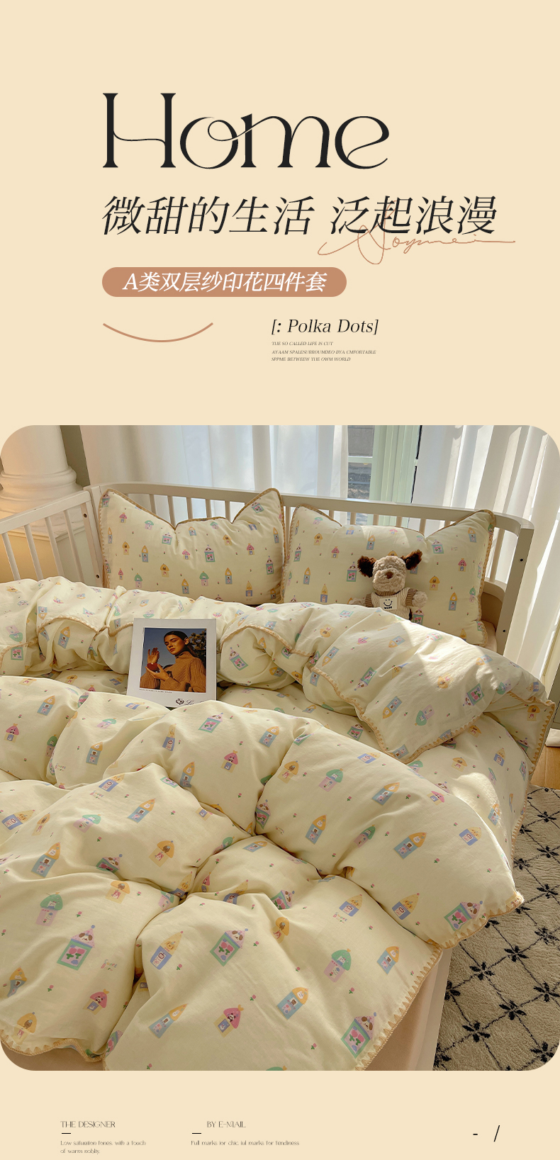 商品名称:三朵 2025新款全棉双层纱三角针四件套 爱丁堡