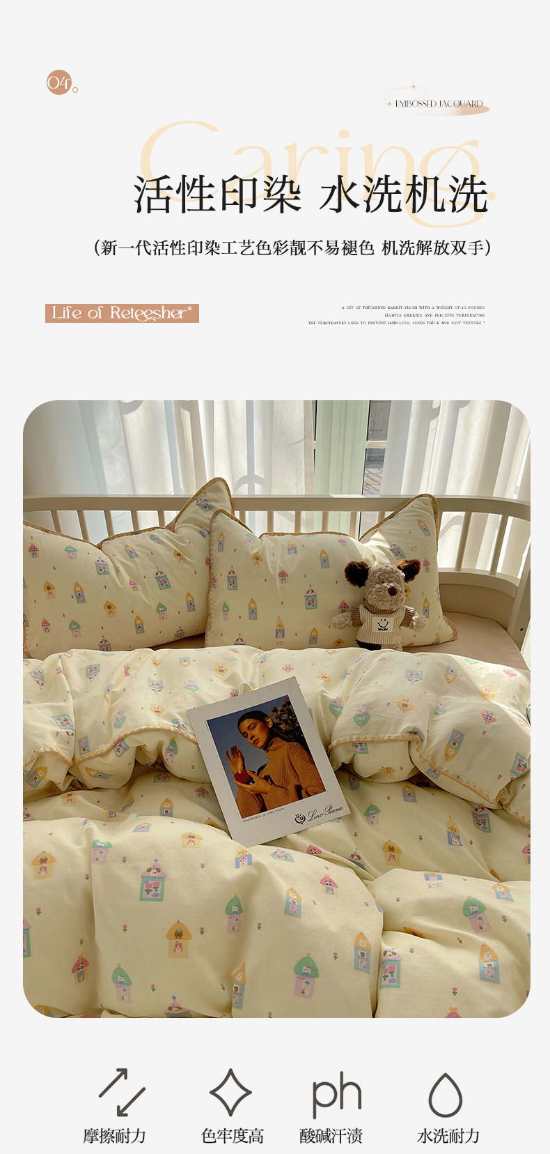 (总)三朵家纺 2026新款云柔水洗棉大花边A类韩版四件套,爱上樱桃,半岛玫瑰,草莓兔,梵高印象,花花熊仔,漫漫花香,沐语花朝,俏皮樱桃,青樱花梦