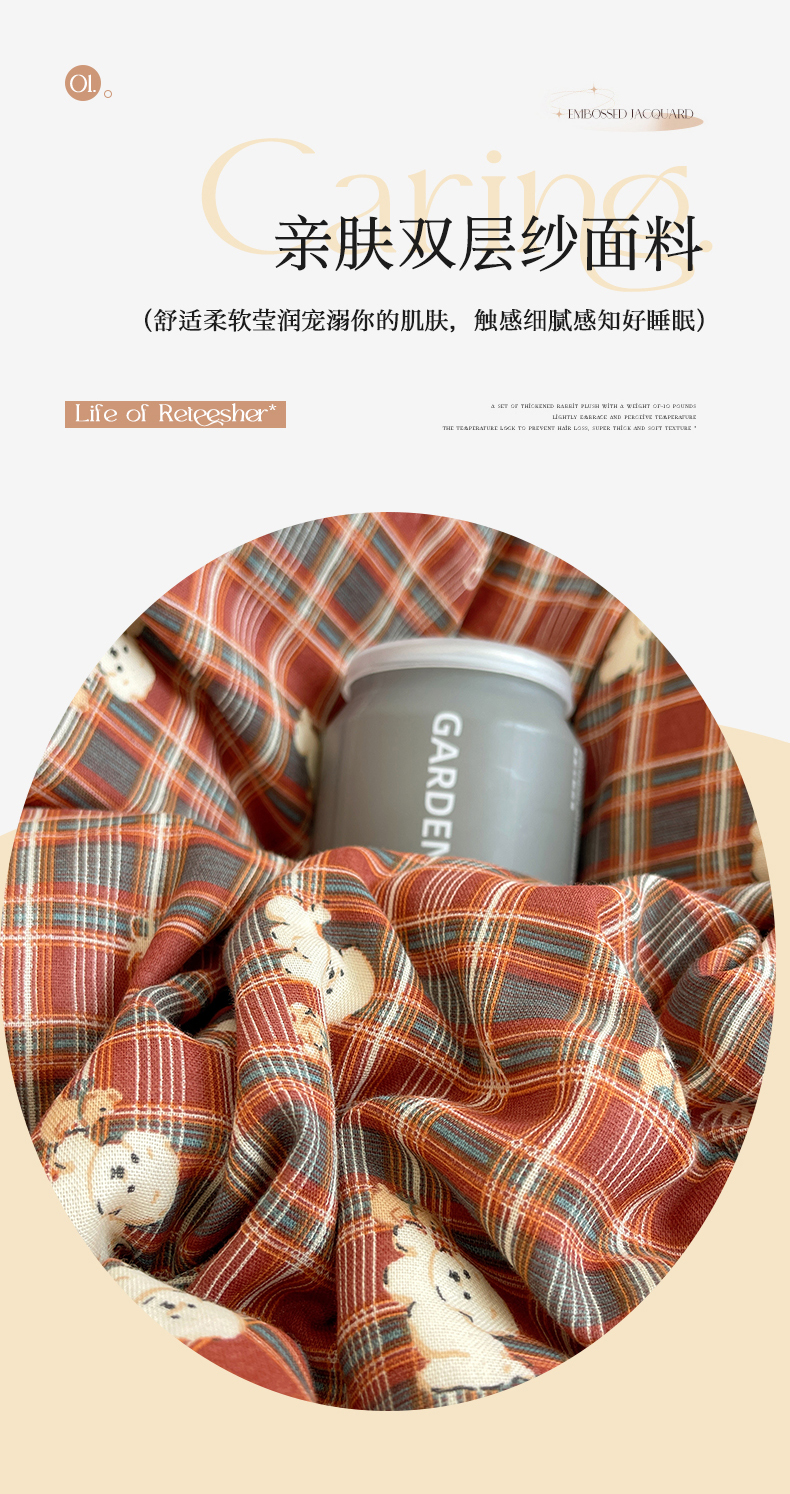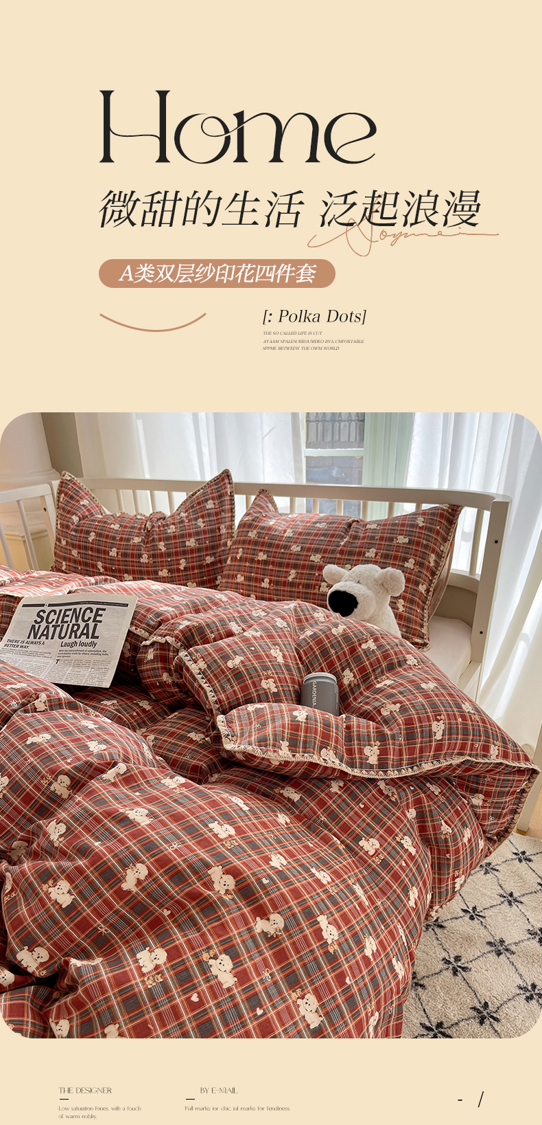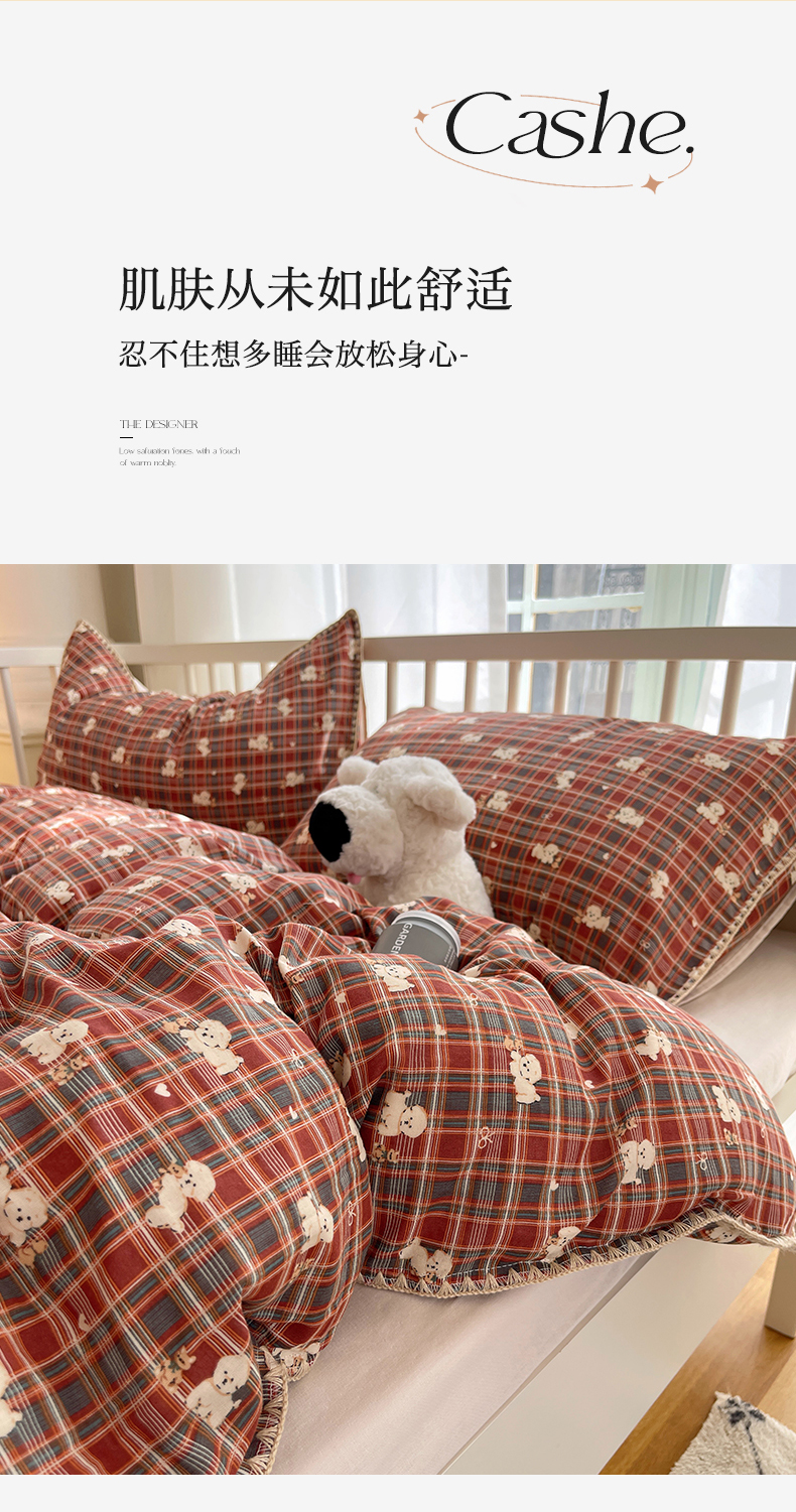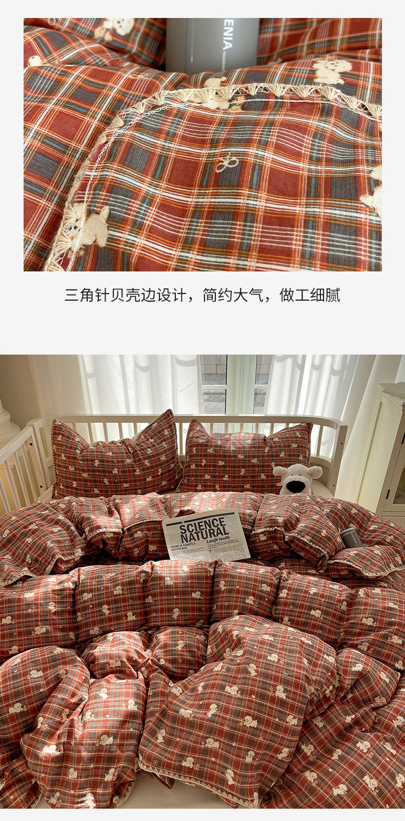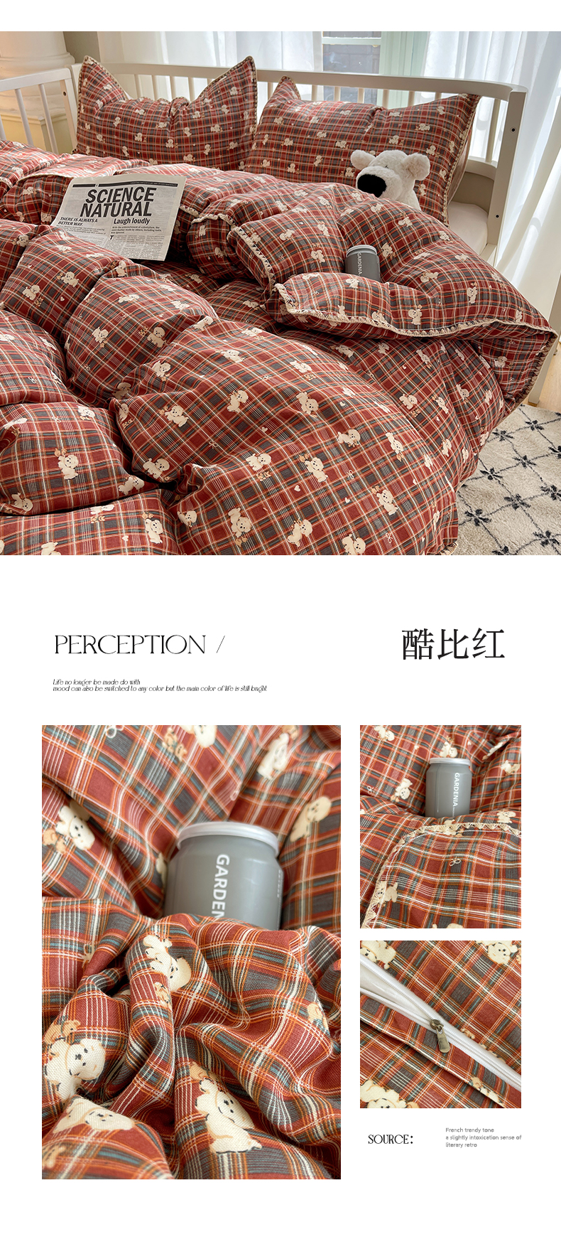 商品名称:三朵 2025新款全棉双层纱三角针四件套 酷比红