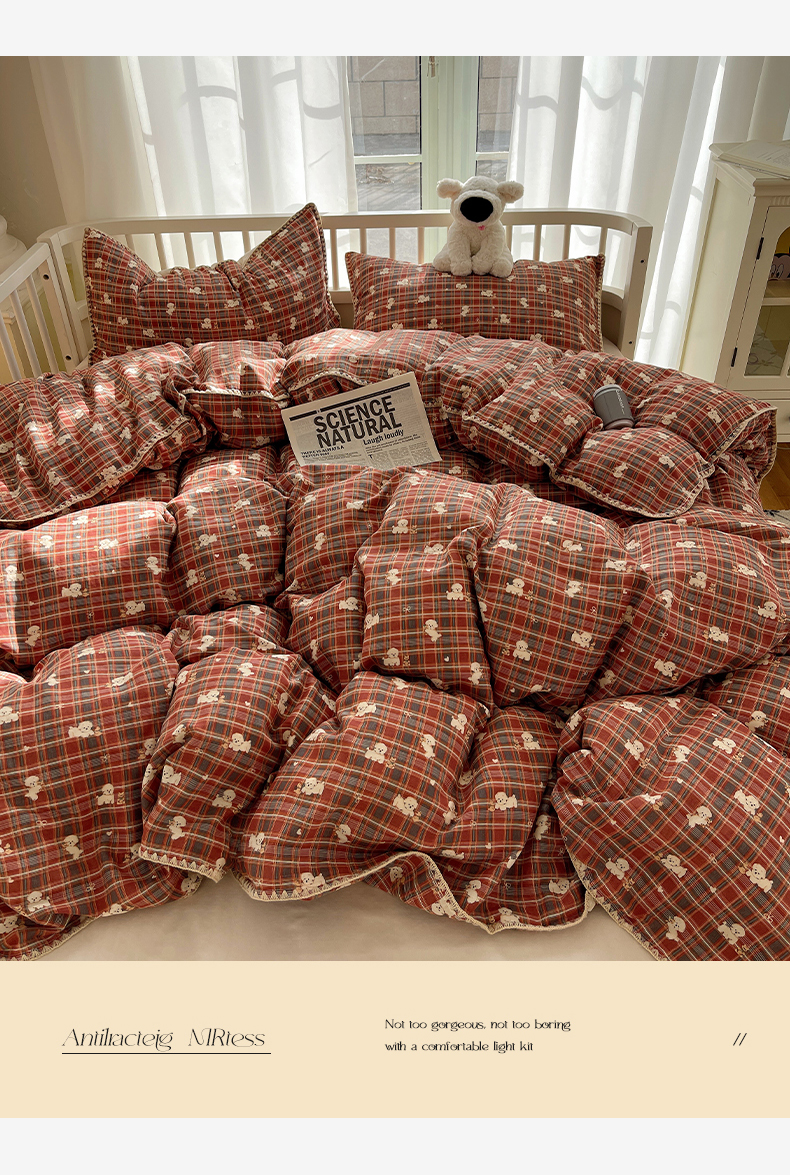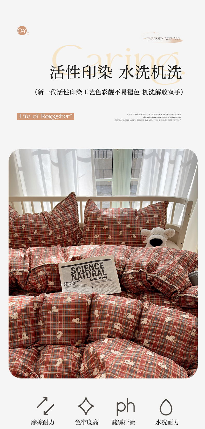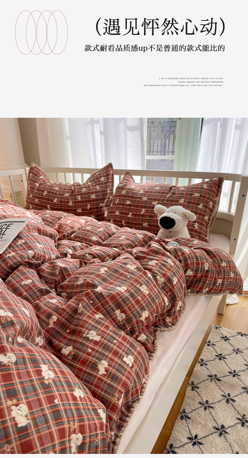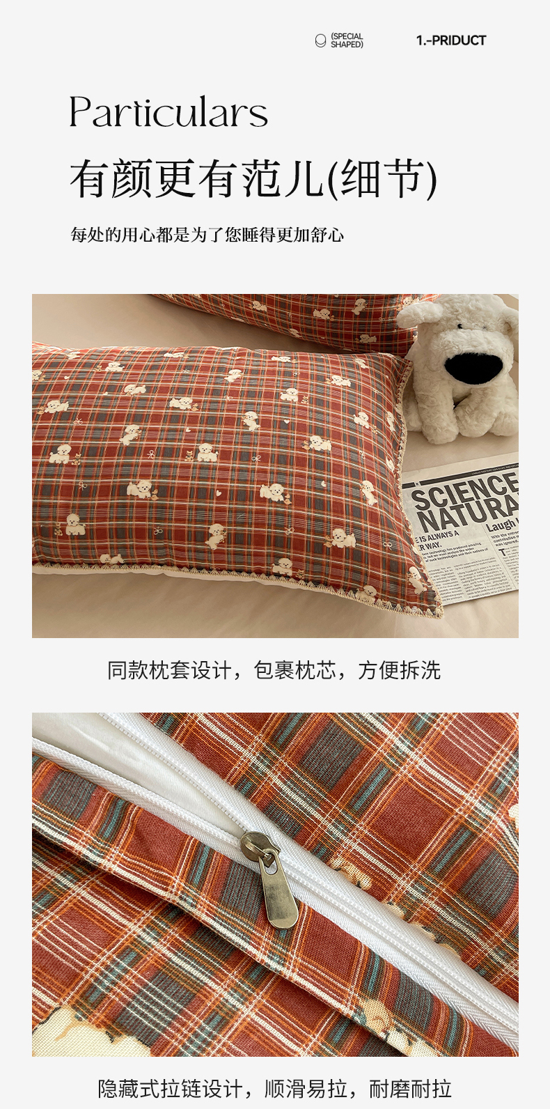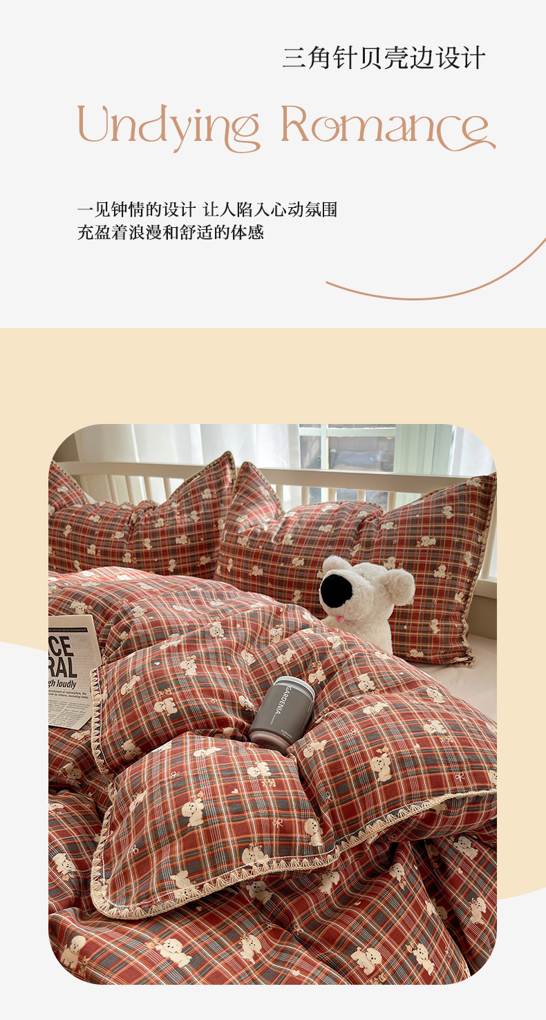 商品名称:三朵 2025新款全棉双层纱三角针四件套 酷比红