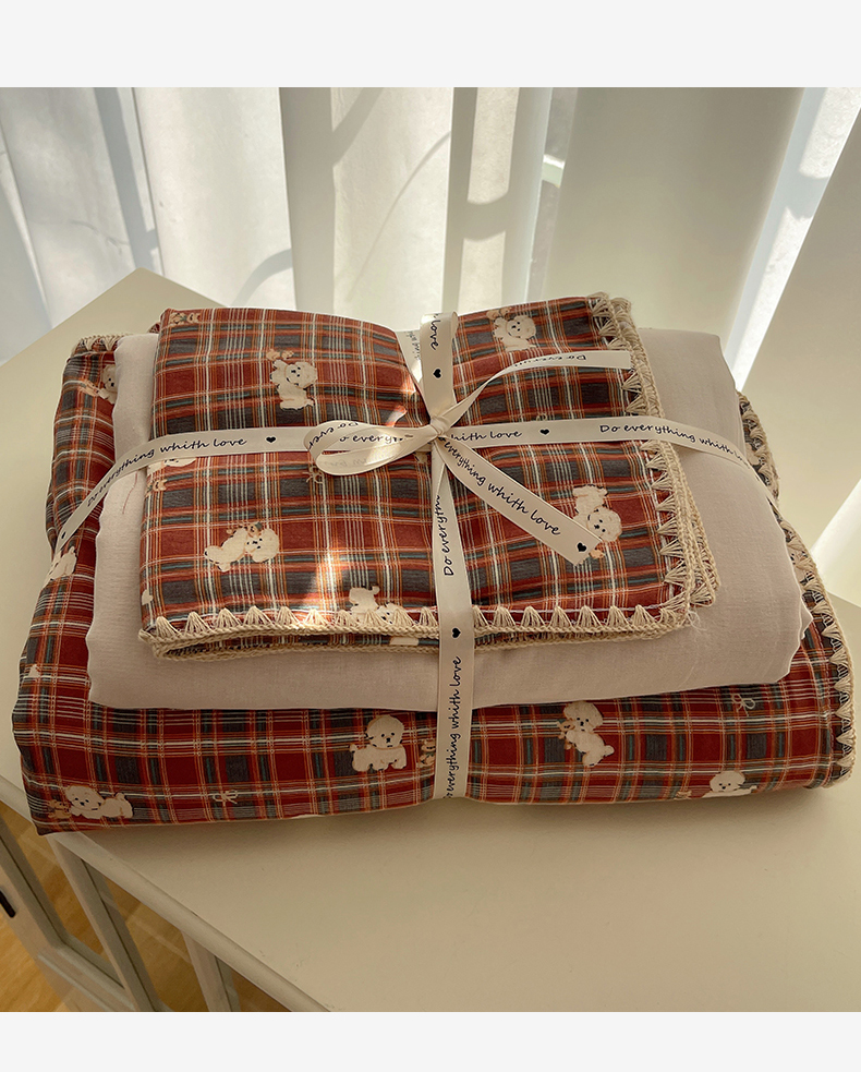 三朵 2025新款全棉双层纱三角针四件套 酷比红
