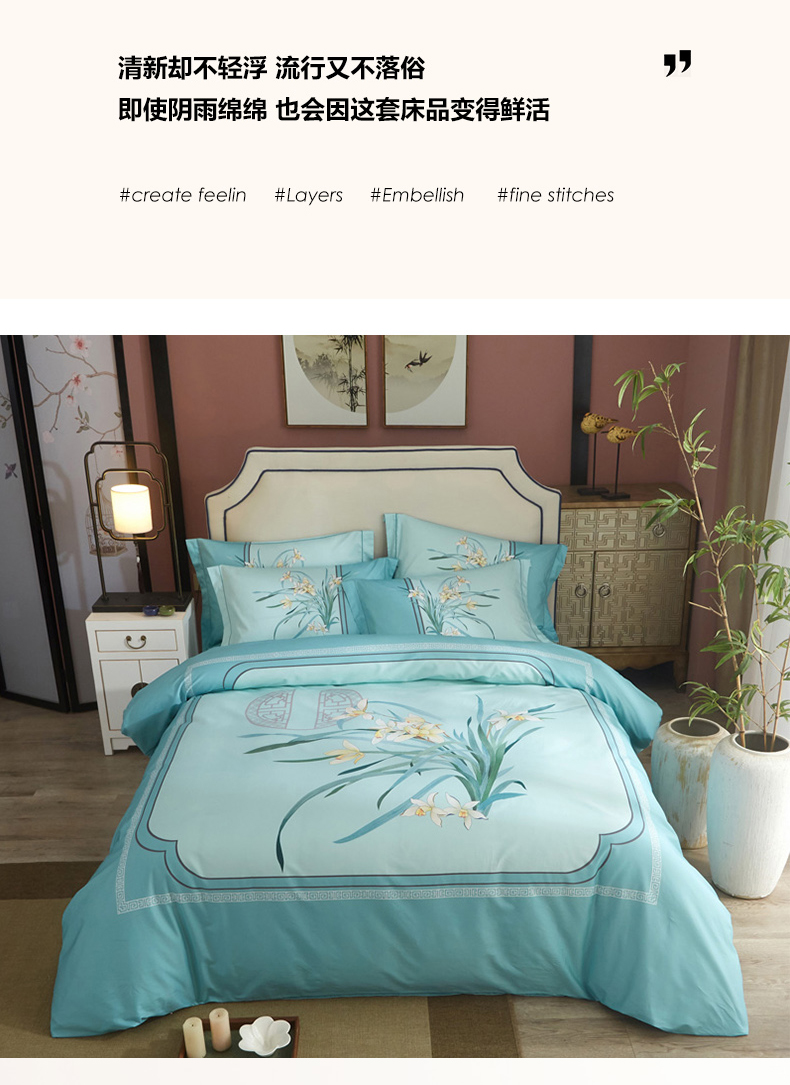 (总)启航家居 2025直播爆款全棉纯色磨毛刺绣四件套古欧时尚系列,古欧时尚宾利蓝,古欧时尚豆沙,古欧时尚浅橙,古欧时尚优雅紫,古欧时尚珍珠白