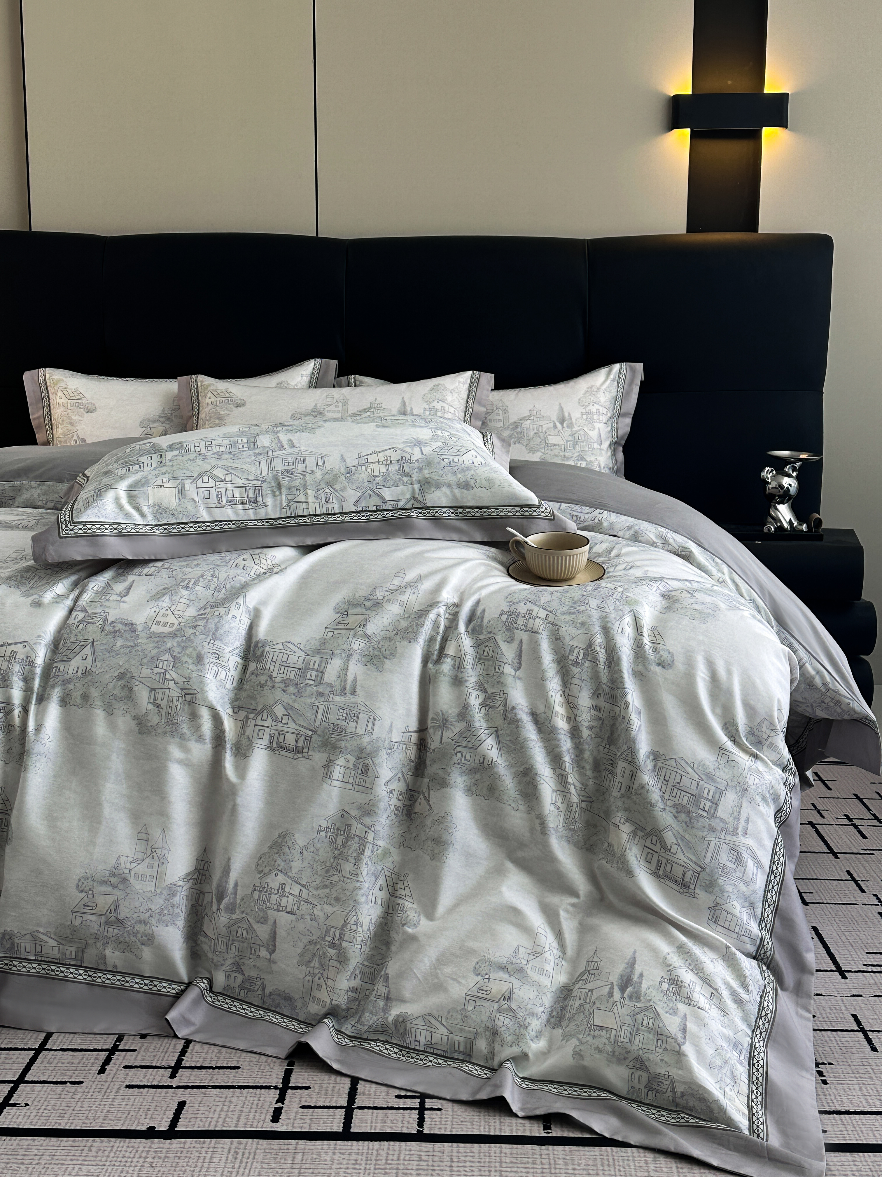 商品名称:顾家家居 2025新款长绒棉数码印花隐形宽边四件套 水墨人生