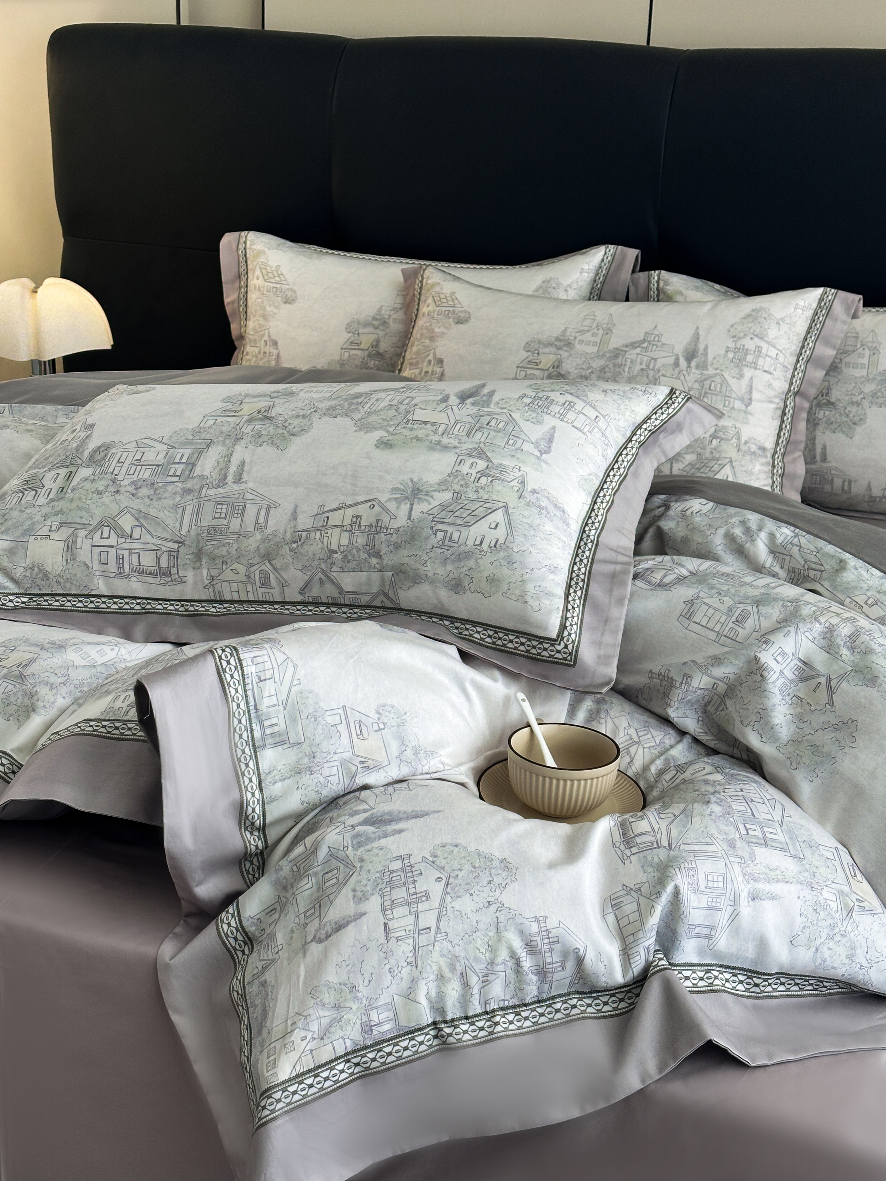 顾家家居 2025新款长绒棉数码印花隐形宽边四件套 水墨人生