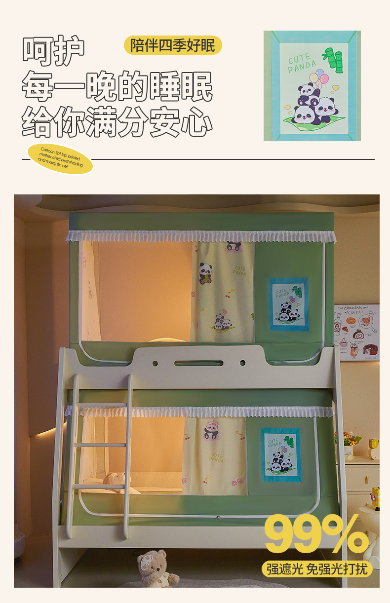 当前位置: 91家纺网 > 商品网购 > 床上用品 > 蚊帐 > 坐床式蚊帐 > 迪凡保罗2025新款2504专版印花遮光帘上下铺子母蚊帐-常规款 贪吃熊猫