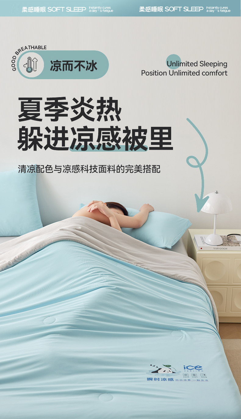 (总)大彩家居 2025新款锦氨冰激凌雪糕被子凉感丝夏凉被被芯夏被空调被,高级灰,梦幻紫,抹茶绿,天空蓝,樱花粉