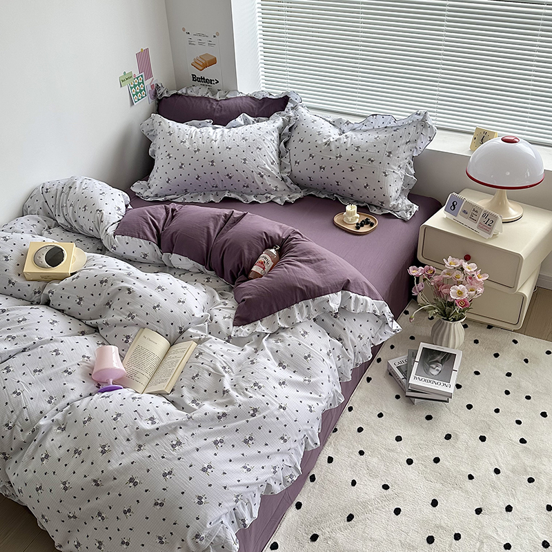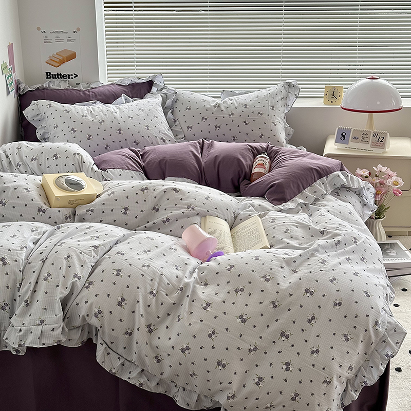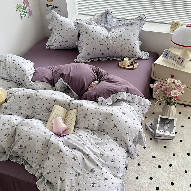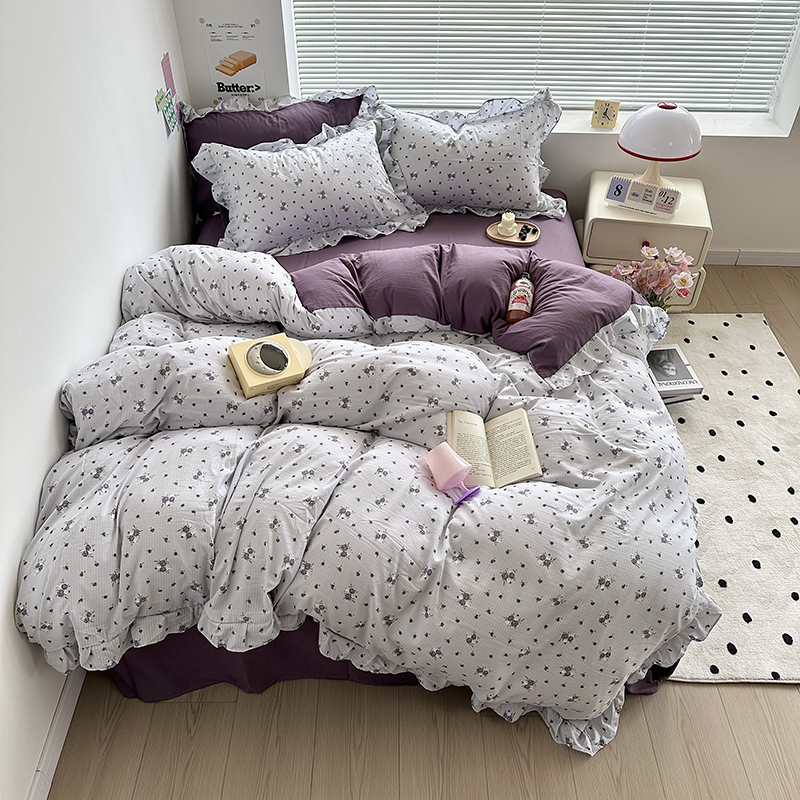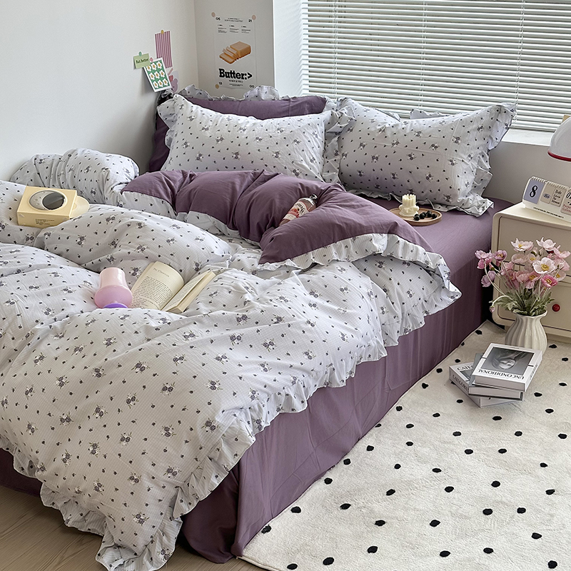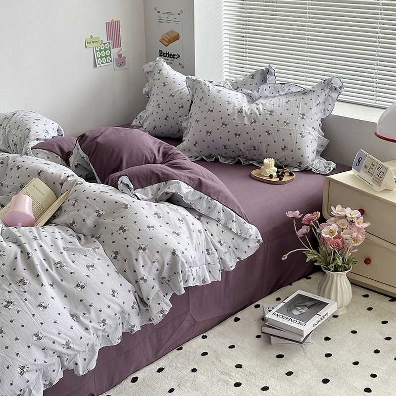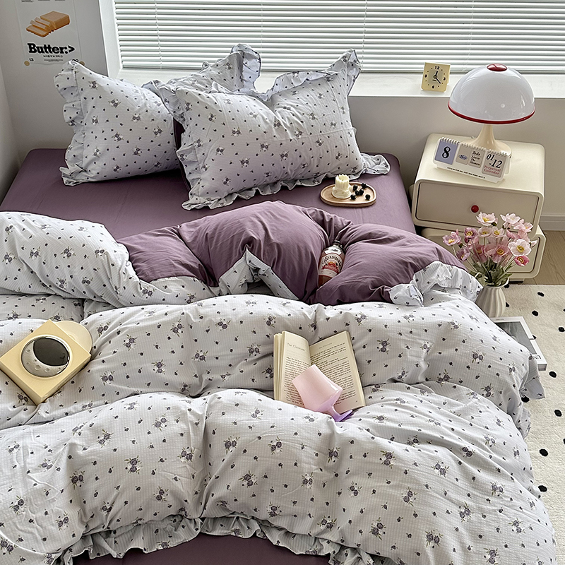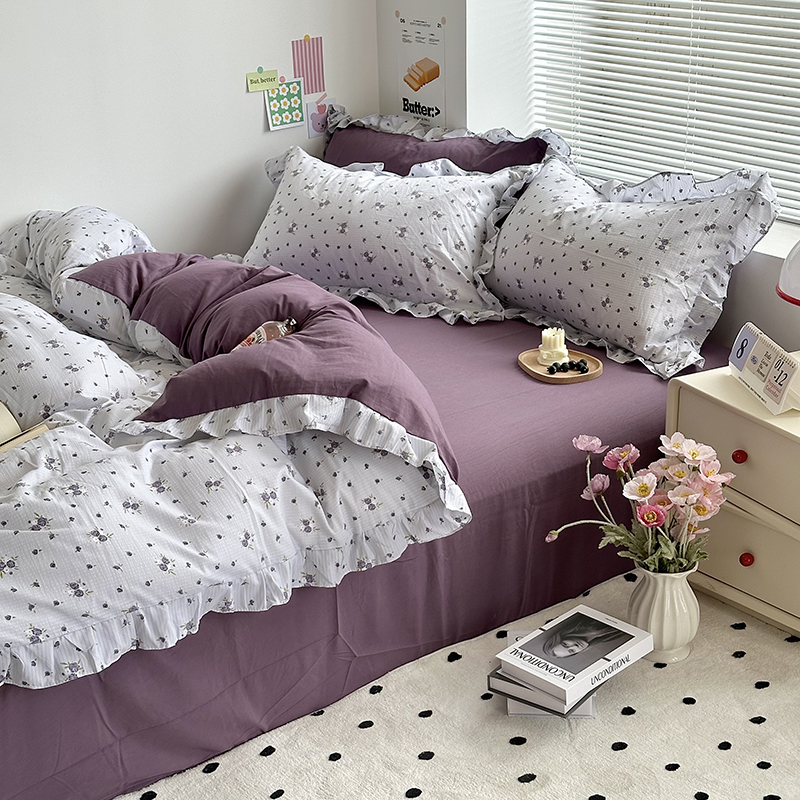 当前位置: 91家纺网 > 商品网购 > 床品套件 > 四件套 > 全棉普通四件套 > 希丞家居 2025新款花卉泡泡纱花边四件套 紫韵