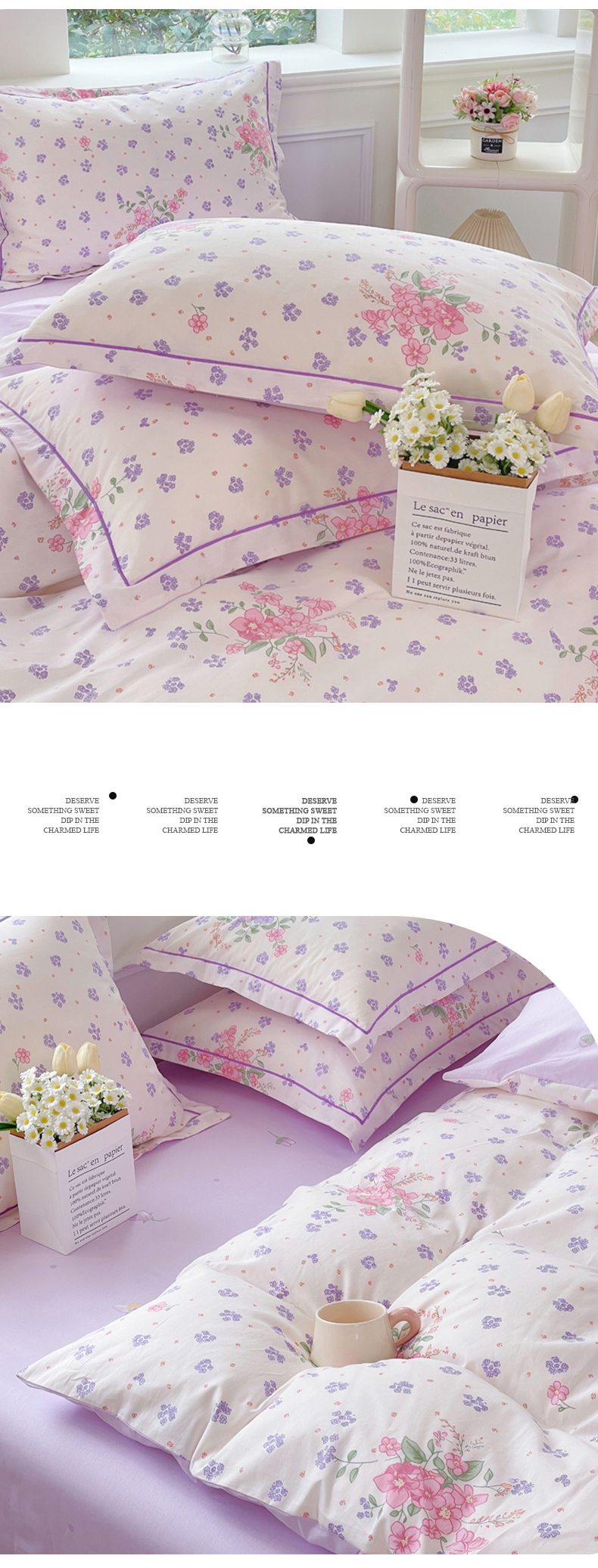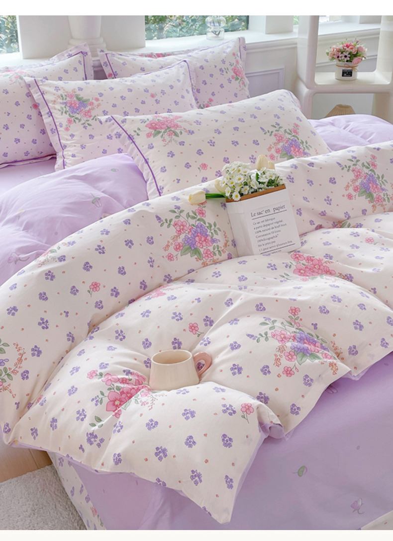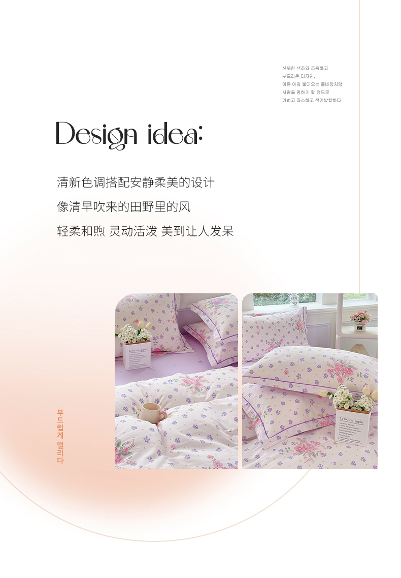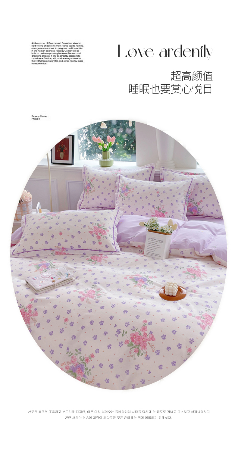 铭博家纺 新款直播爆款网红全棉四件套13070印花吊边一字绣纯棉被套工艺款 花语呢喃,花语呢喃
