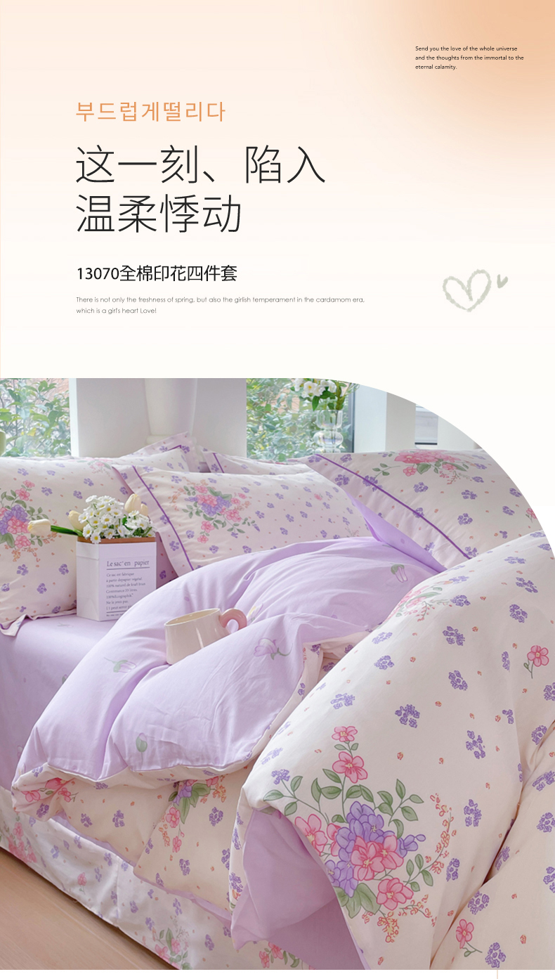 (总)铭博家纺 2025新款直播爆款100%全棉吊边一字绣工艺款13070印花全棉四件套