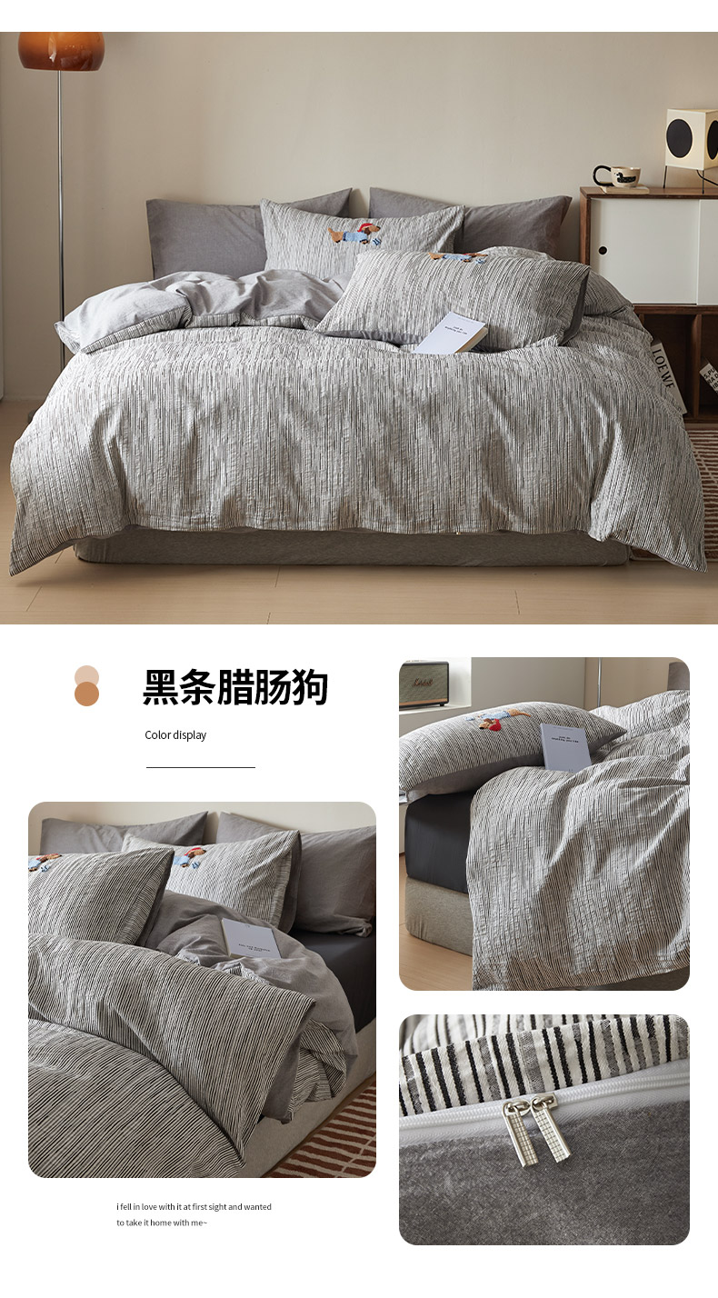 商品名称:怡家居 2025新款色织大提花立体毛巾绣四件套 黑条腊肠狗