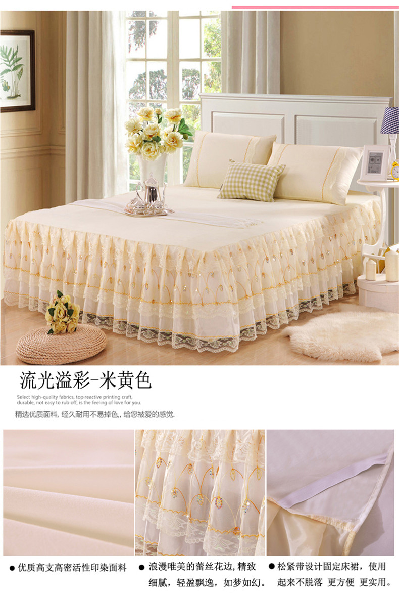 商品名称:情恒家纺 2025新款蕾丝床裙三件套系列-流光溢彩 流光溢彩-米黄
