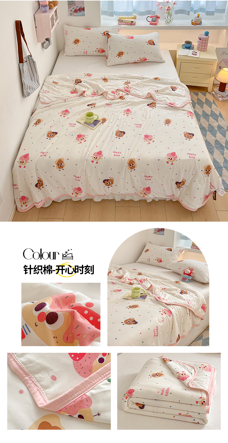 商品名称:桃子家居 2025新款A类高品质牛奶针织棉软糯大豆夏被 针织棉-开心时刻