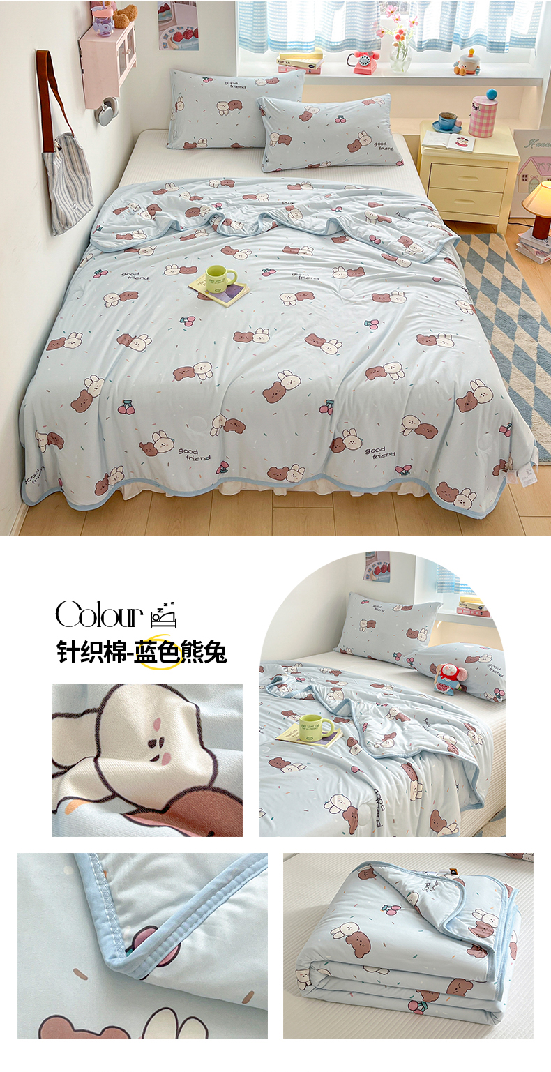 商品名称:桃子家居 2025新款A类高品质牛奶针织棉软糯大豆夏被 针织棉-蓝色熊兔