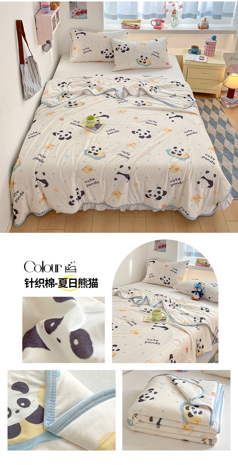 商品名称:桃子家居 2025新款A类高品质牛奶针织棉软糯大豆夏被 针织棉-夏日熊猫