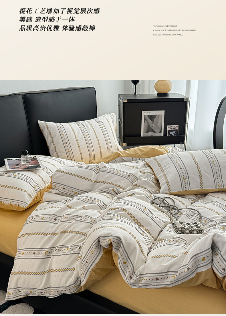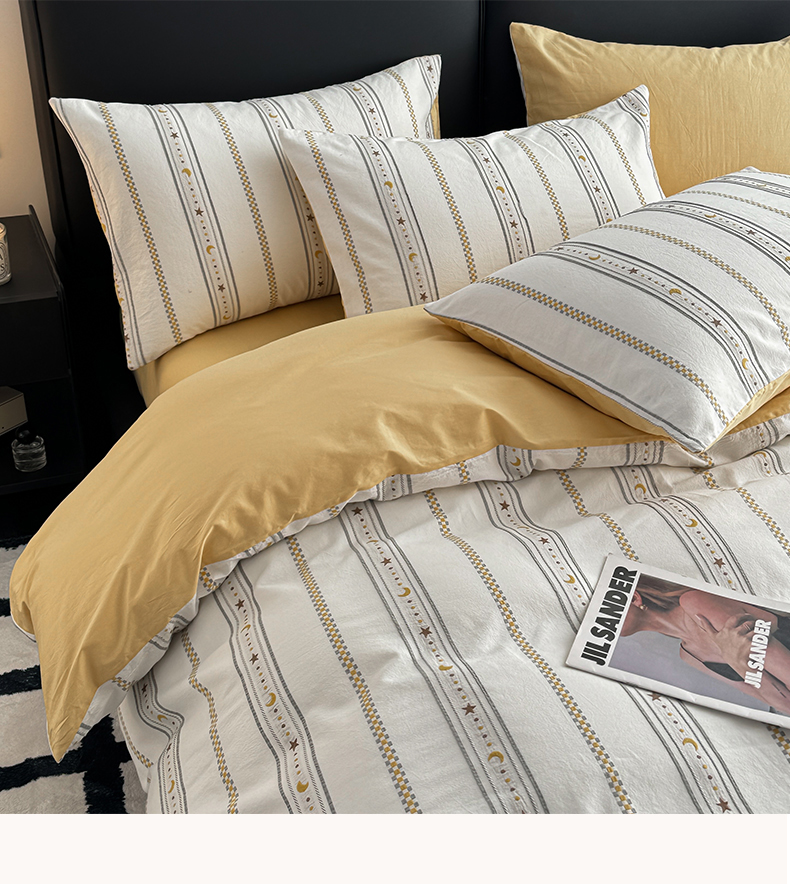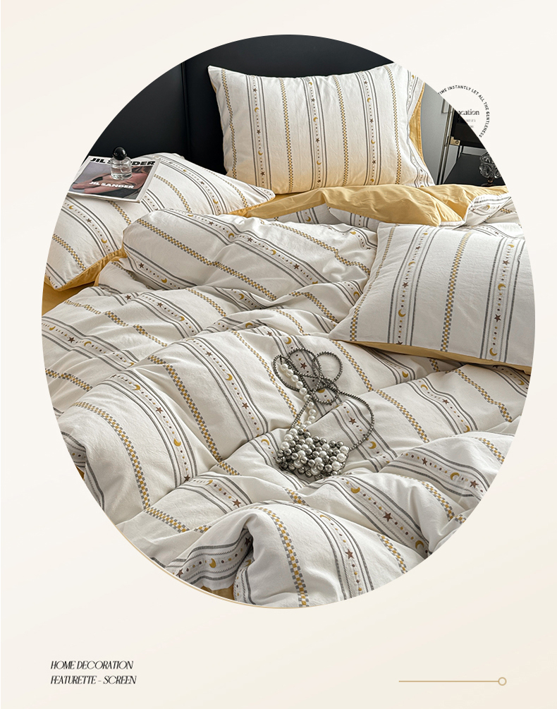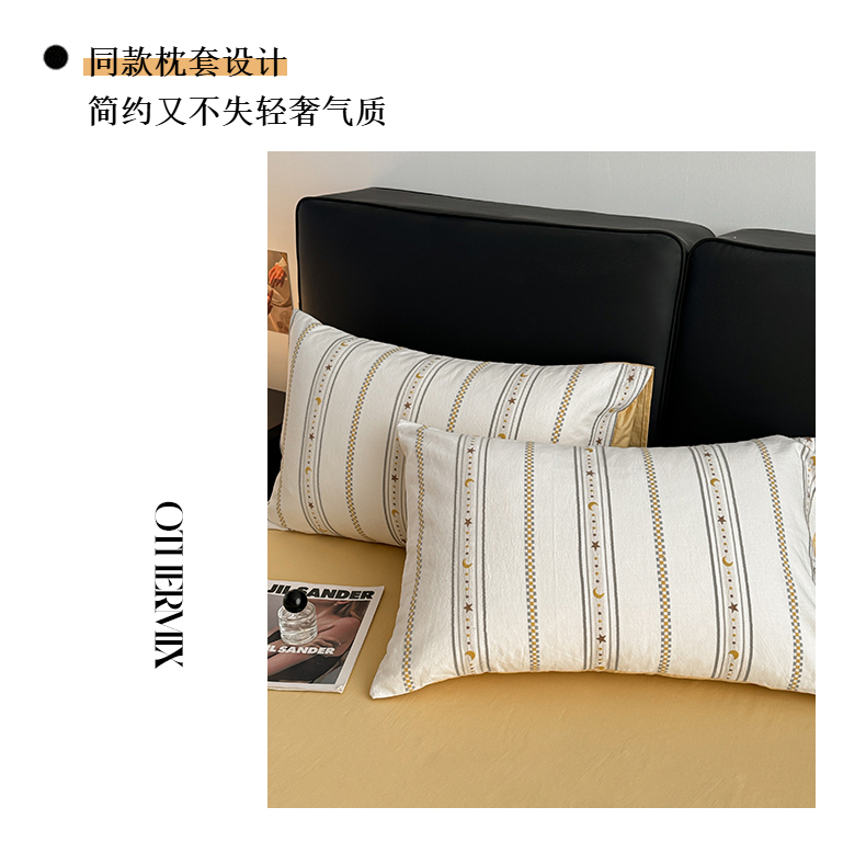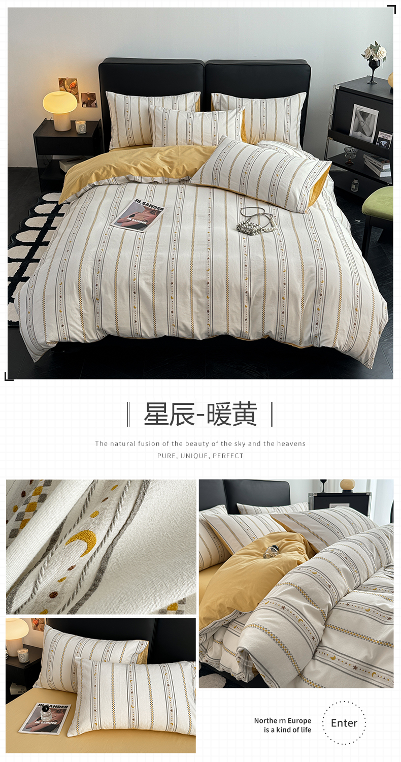 商品名称:简宜家居(朝初家纺) 2025新款40支全棉提花四件套(简川-星辰系列) 星辰-暖黄