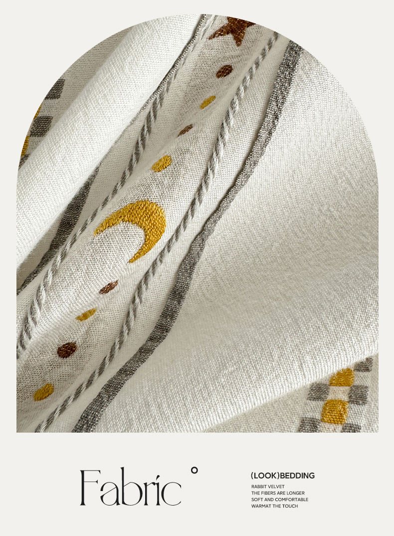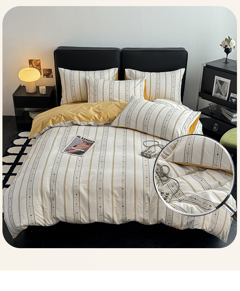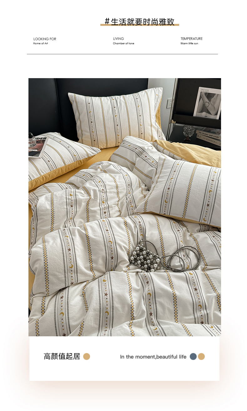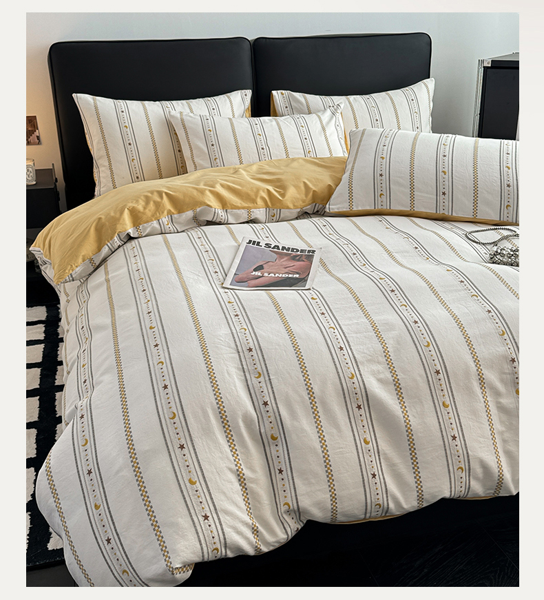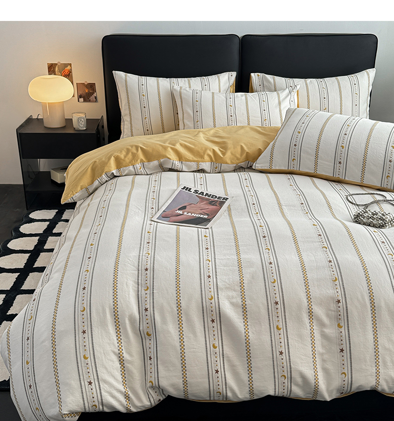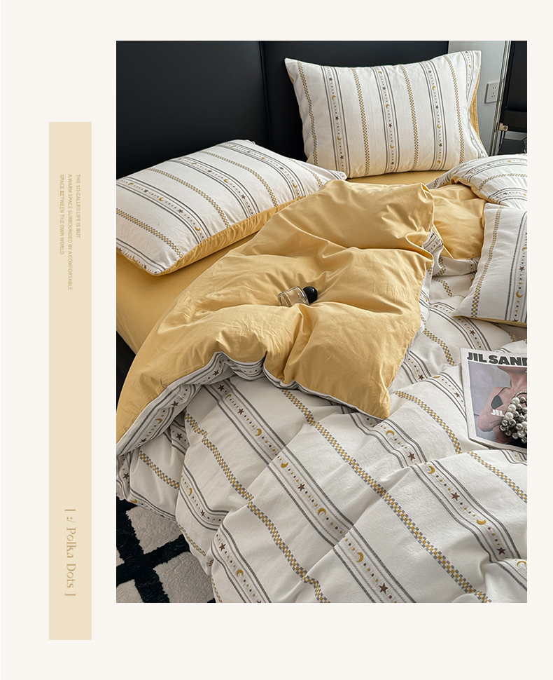 商品名称:简宜家居(朝初家纺) 2025新款40支全棉提花四件套(简川-星辰系列) 星辰-暖黄