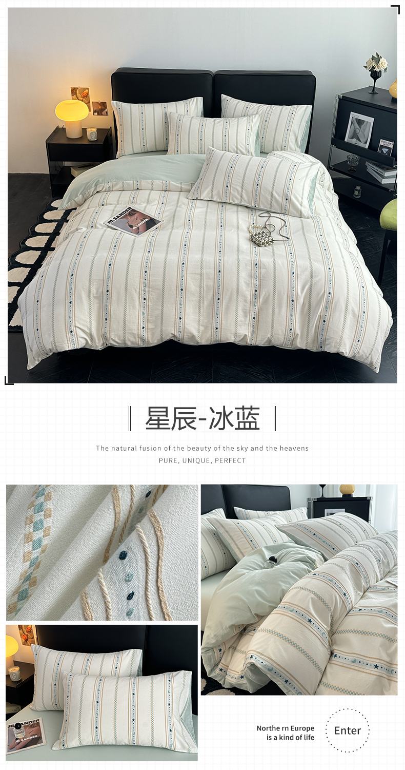 (总)简宜家居 北欧风简约纯棉四件套全棉四件套三件套,富士山下,城墨浅,曼迪尼,瀚海,蓝大格,围城,醇香,佩斯