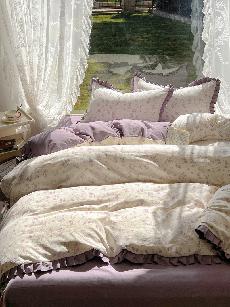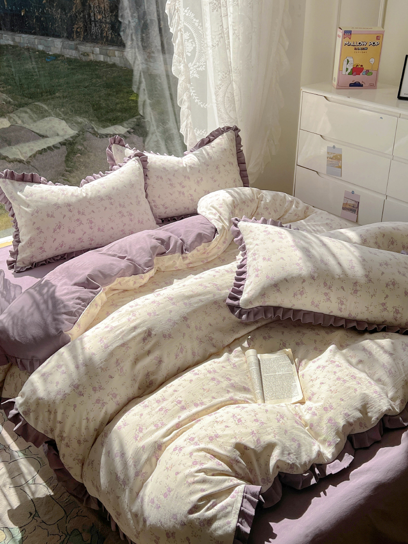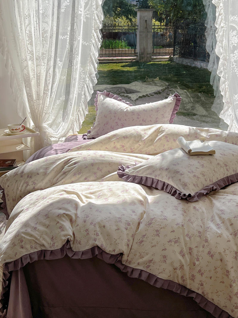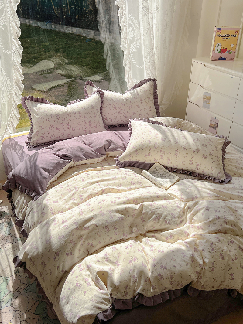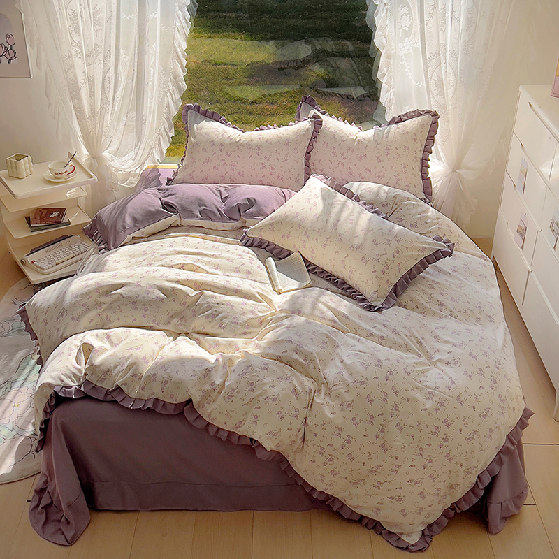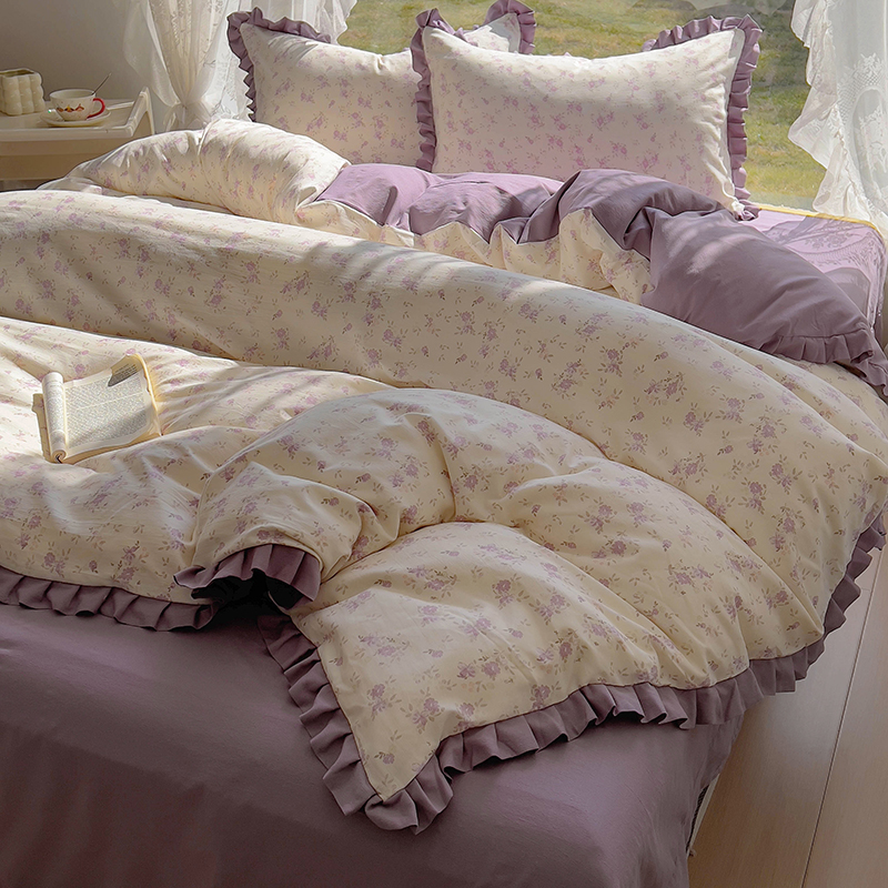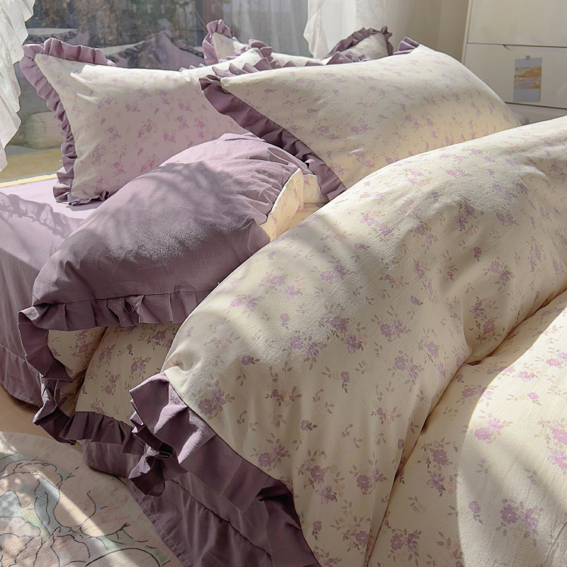 商品名称:欧尚 2025新款针织棉双层纱四件套 悠然紫