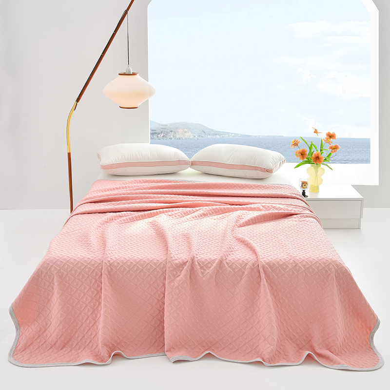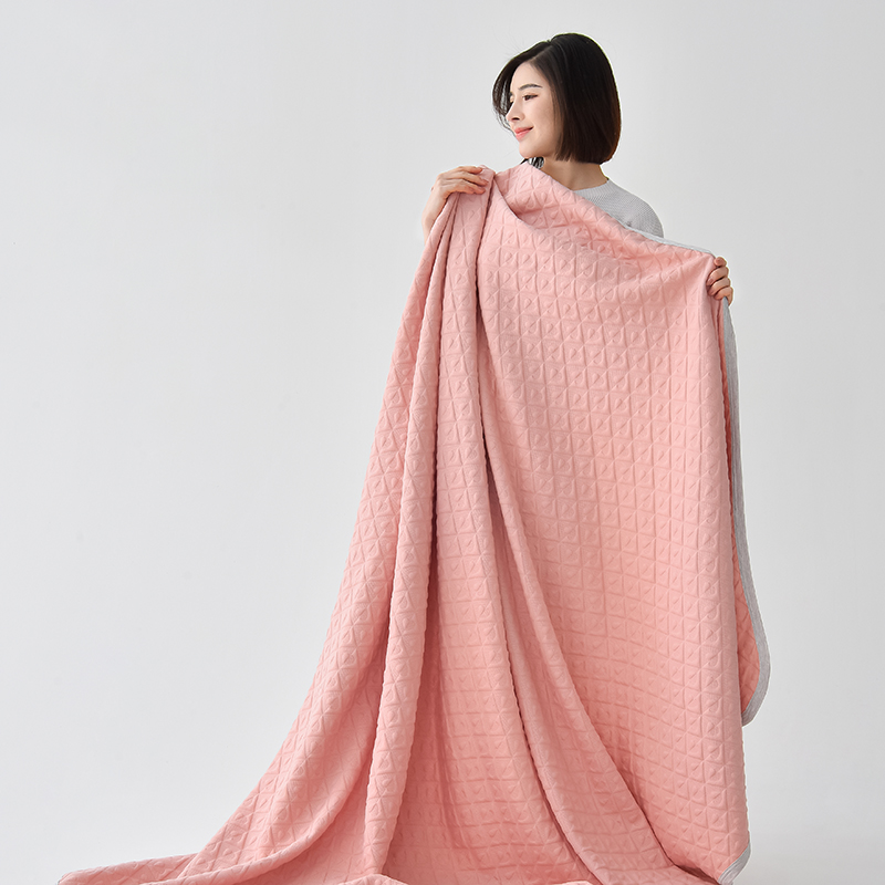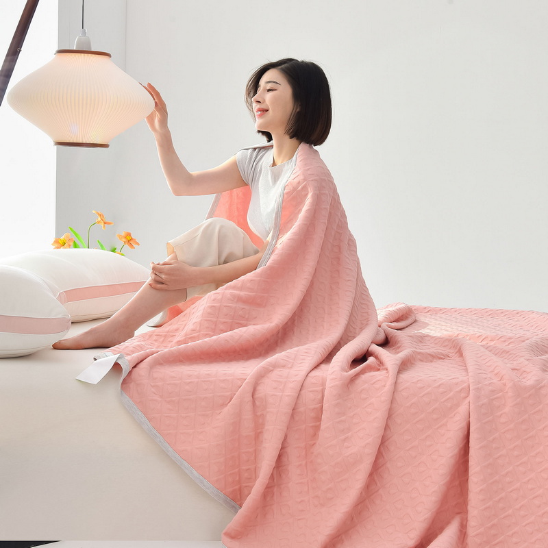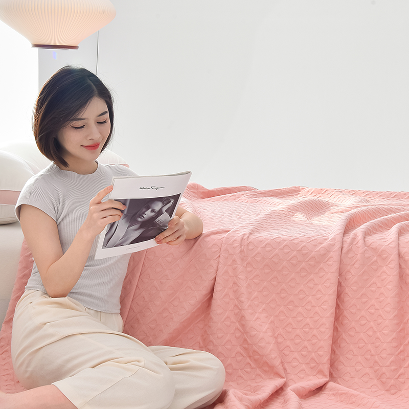 米奈家居 2025全棉针织棉提花多功能盖毯 公主粉