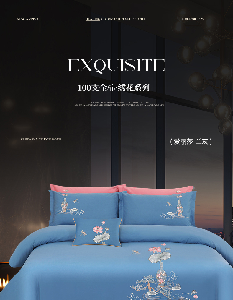 (总)浩情国际婚庆供货中心 2026新品春夏四季款全棉纯棉高端绣花四件套-爱丽莎,爱丽莎-宾利兰,爱丽莎-豆沙,爱丽莎-翡翠绿,爱丽莎-粉玉,爱丽莎-贵族紫,爱丽莎-孔雀绿,爱丽莎-兰灰,爱丽莎-藕粉,爱丽莎-气质灰,爱丽莎-浅咖
