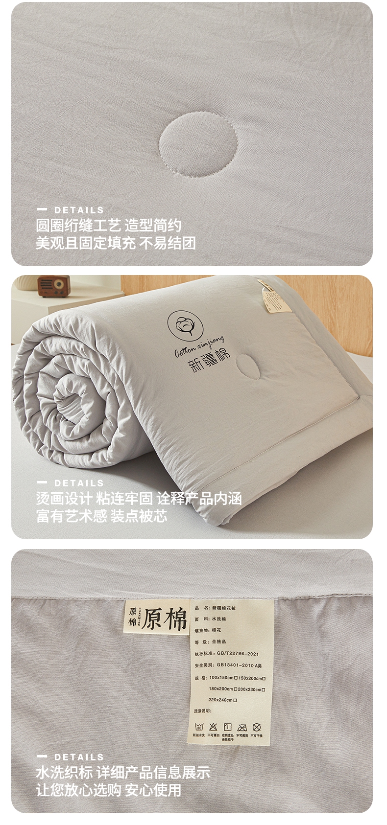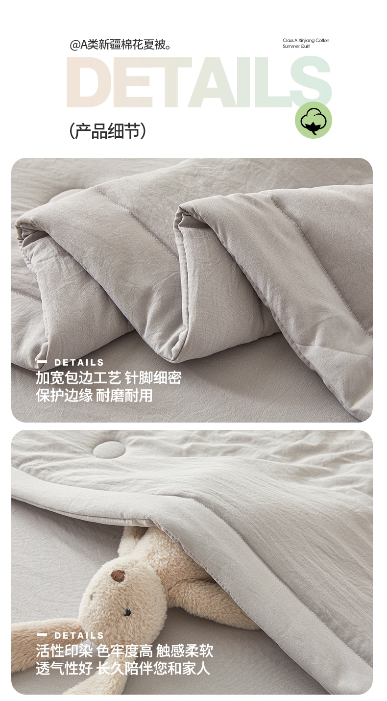 商品名称:晓时候 2025新款无印风水洗棉新疆棉花被夏被夏凉被空调被子 素夏-浅灰