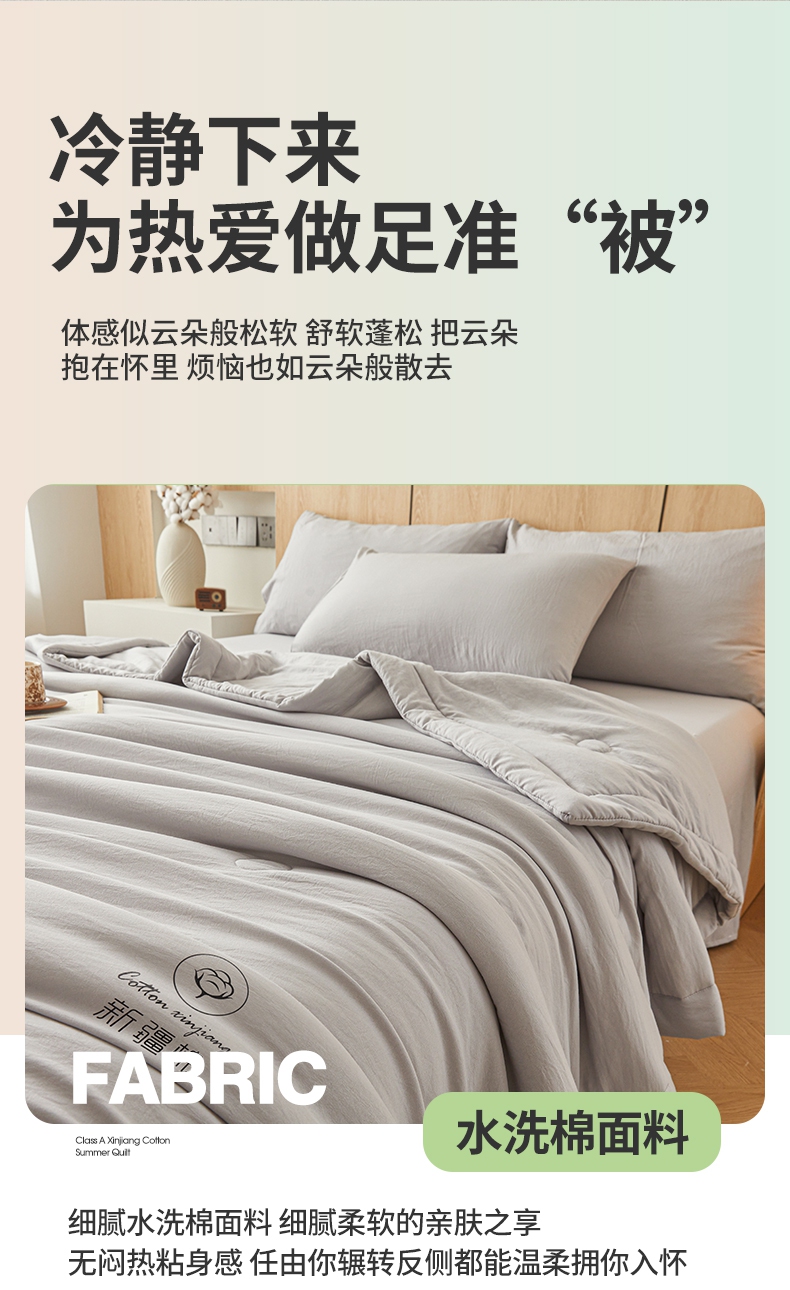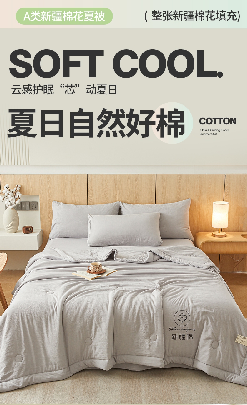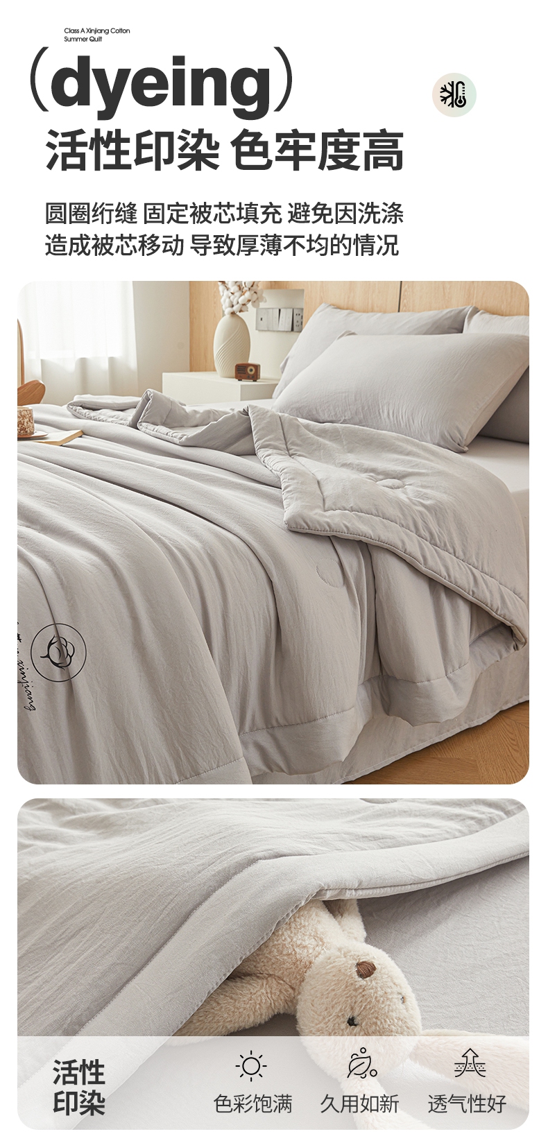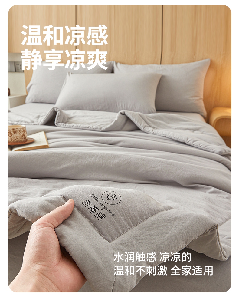 晓时候 2025新款无印风水洗棉新疆棉花被夏被夏凉被空调被子 素夏-浅灰