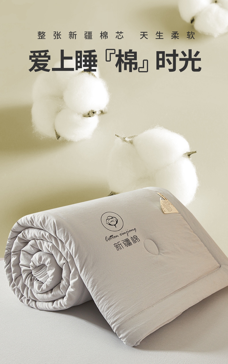 (总)晓时候 2025新款泡泡纱新疆棉花被冬被春秋被被子被芯四季空调被,初棉-淡雅灰,初棉-奶白灰,初棉-奶昔白
