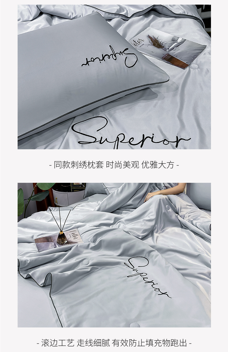 • 91家纺网 家纺一手货源 找家纺 吾诺 2025 字母刺绣水洗天丝夏被四件套水洗真丝夏凉被空调被绣花夏被 字母气质灰
