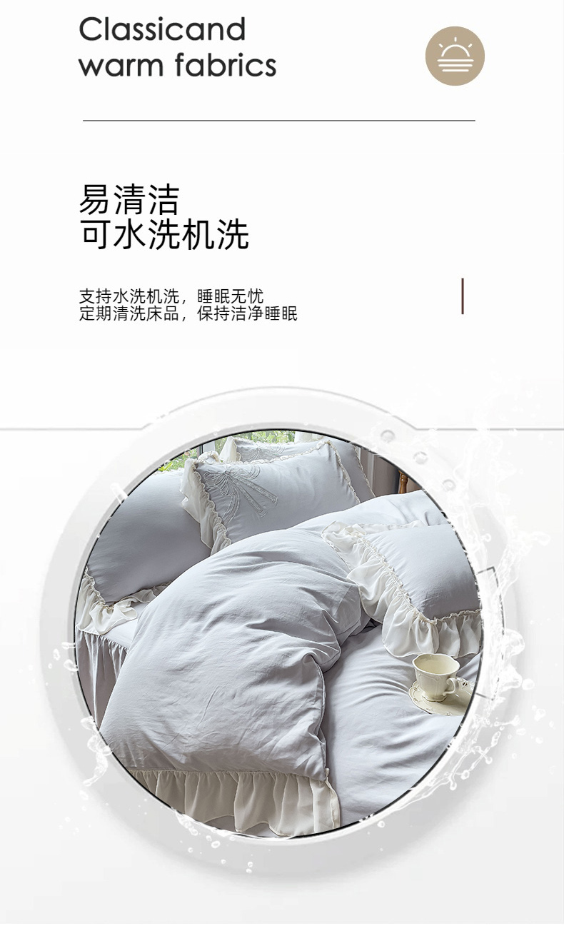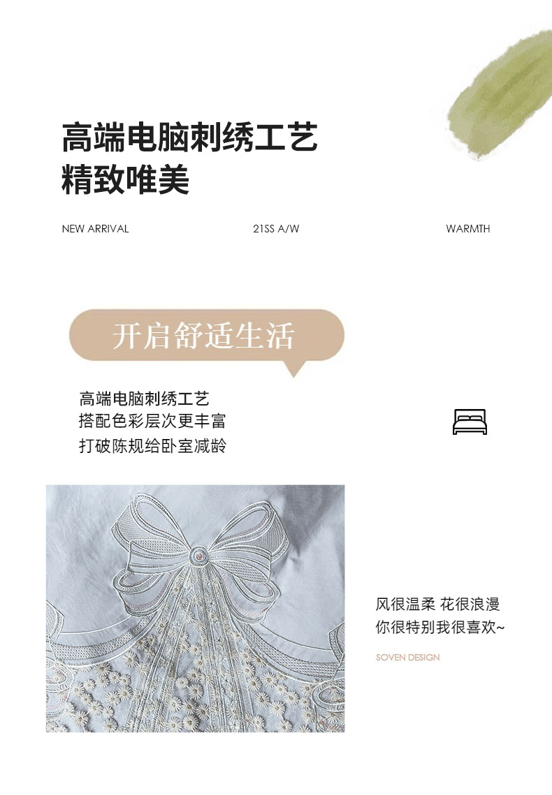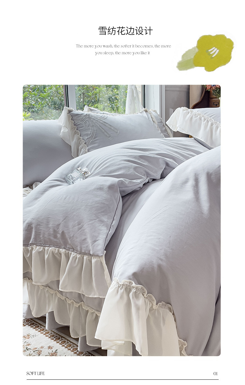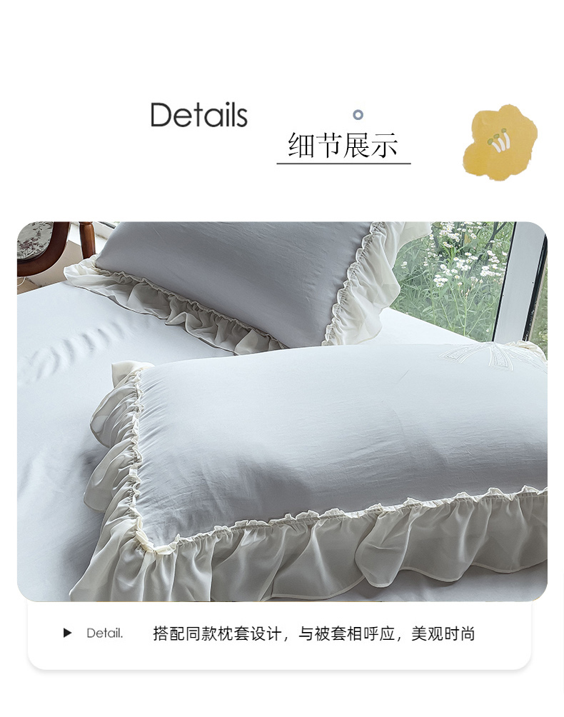 商品名称:睡美人 2025韩版全锦棉刺绣公主风蕾丝床裙款四件套-蝶恋花 蝶恋花-香槟灰