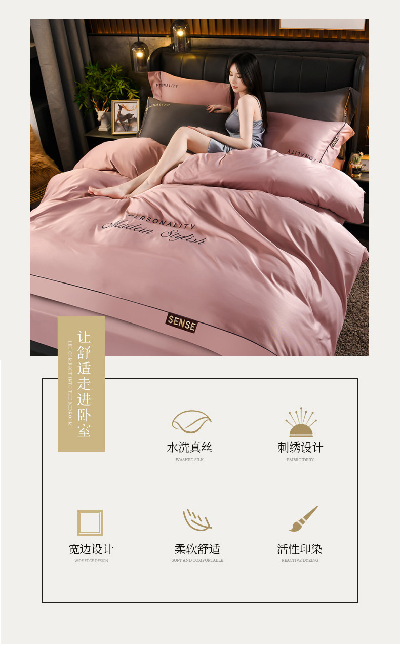 (总)睡美人 2025新款水洗真丝高端轻奢绣花款四件套-爱娜