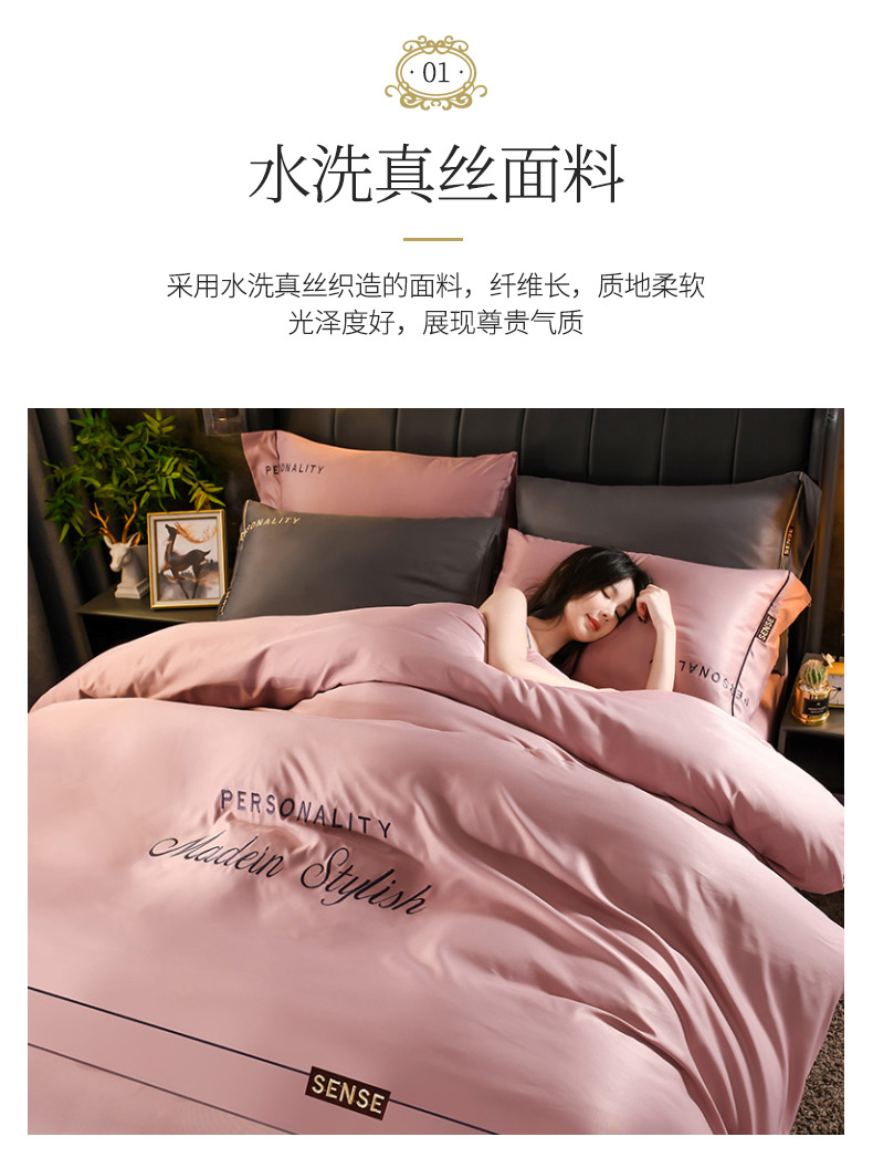 商品名称:(总)睡美人 2025新款水洗真丝高端轻奢绣花款四件套-爱娜