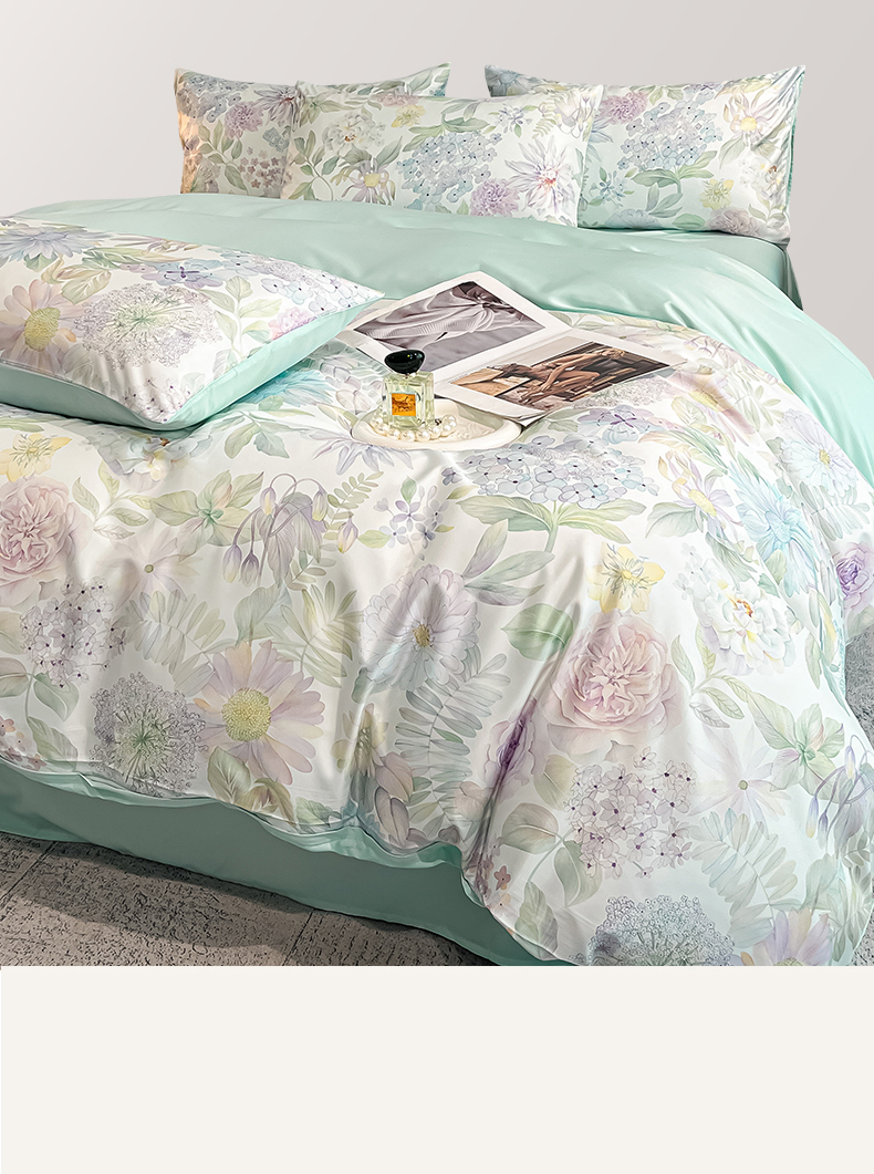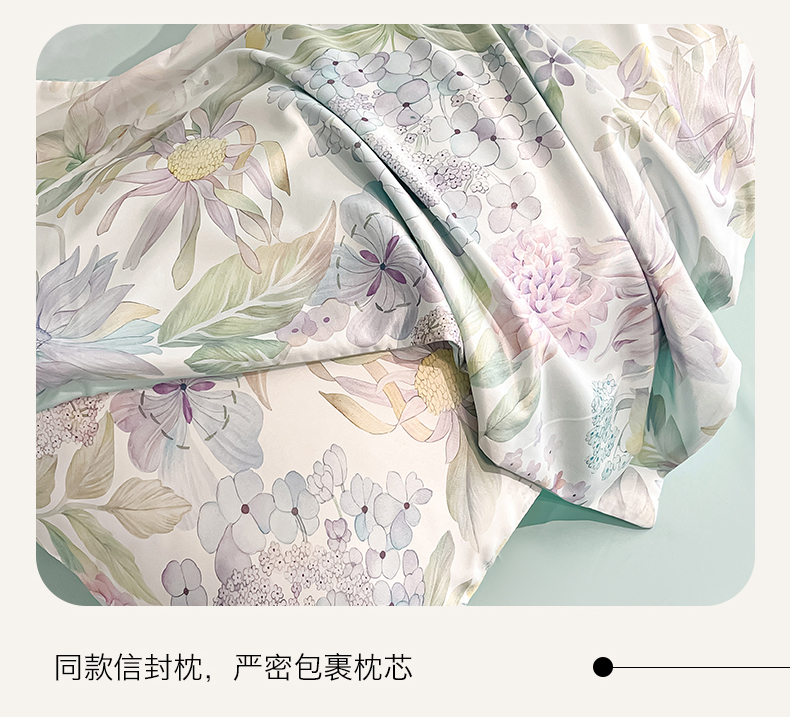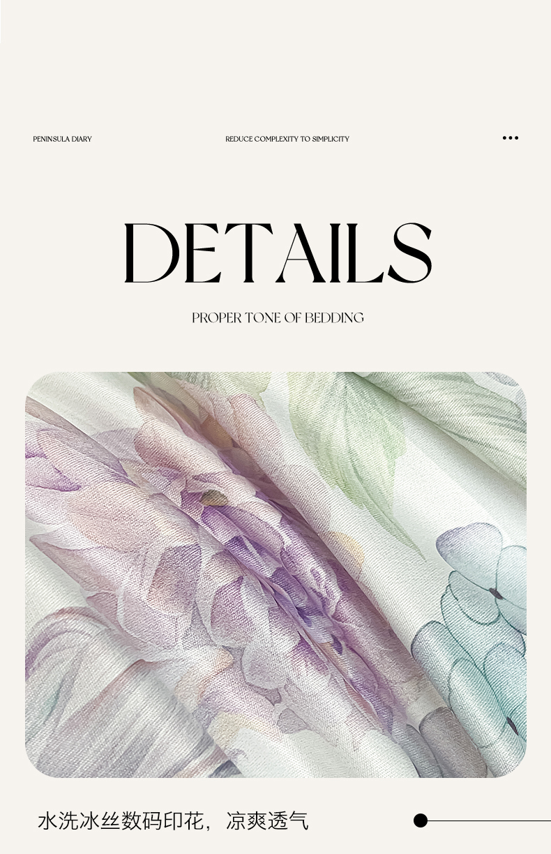 商品名称:笙意家纺2025新款水洗冰丝数码印花暗盒款四件套 絮语