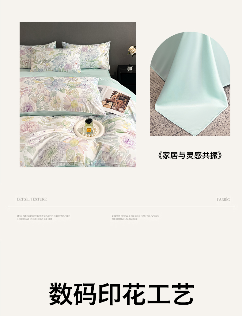 笙意家纺2025新款水洗冰丝数码印花暗盒款四件套 絮语