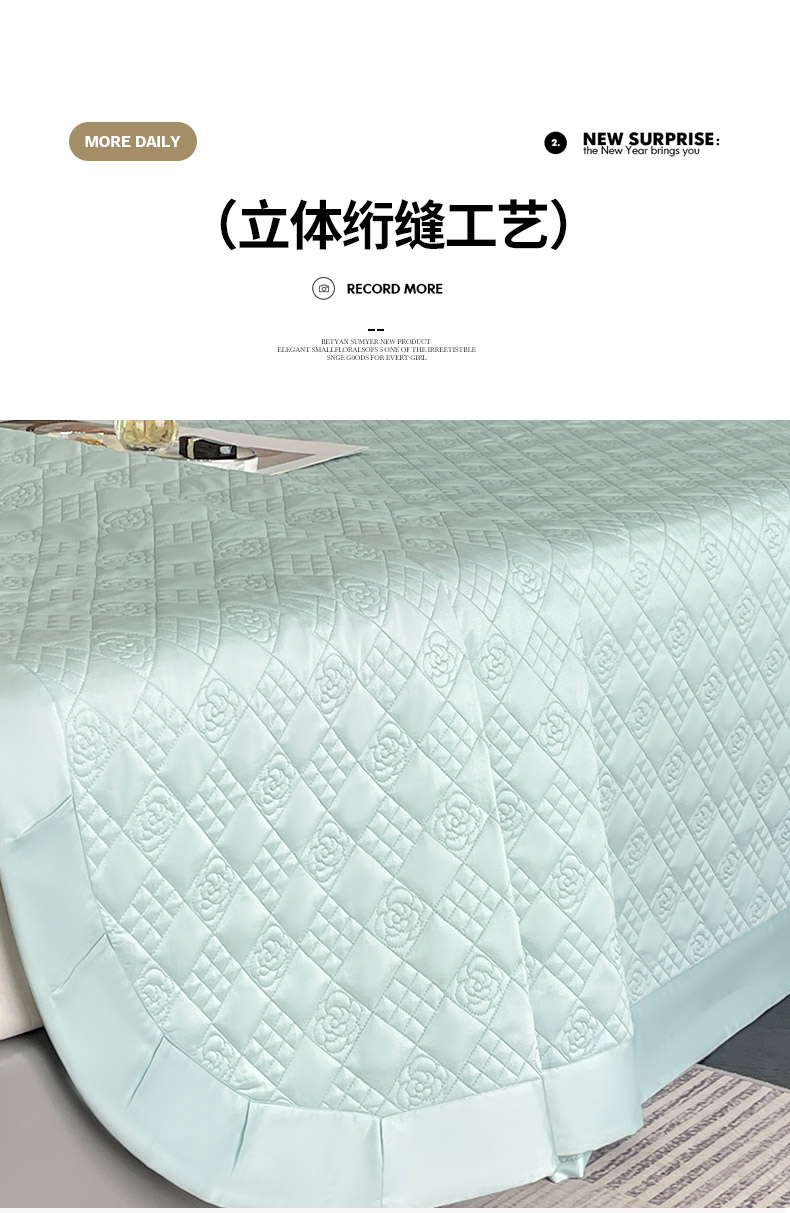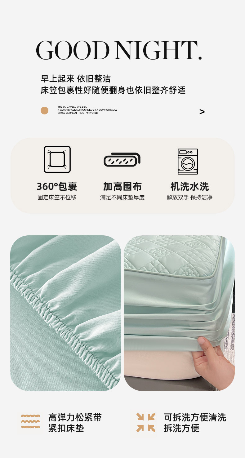 商品名称:2025新款轻奢风A类长绒棉夹棉床盖床笠三件套纯色绗绣四季高级感纯色全棉纯棉床上用品 茶绿