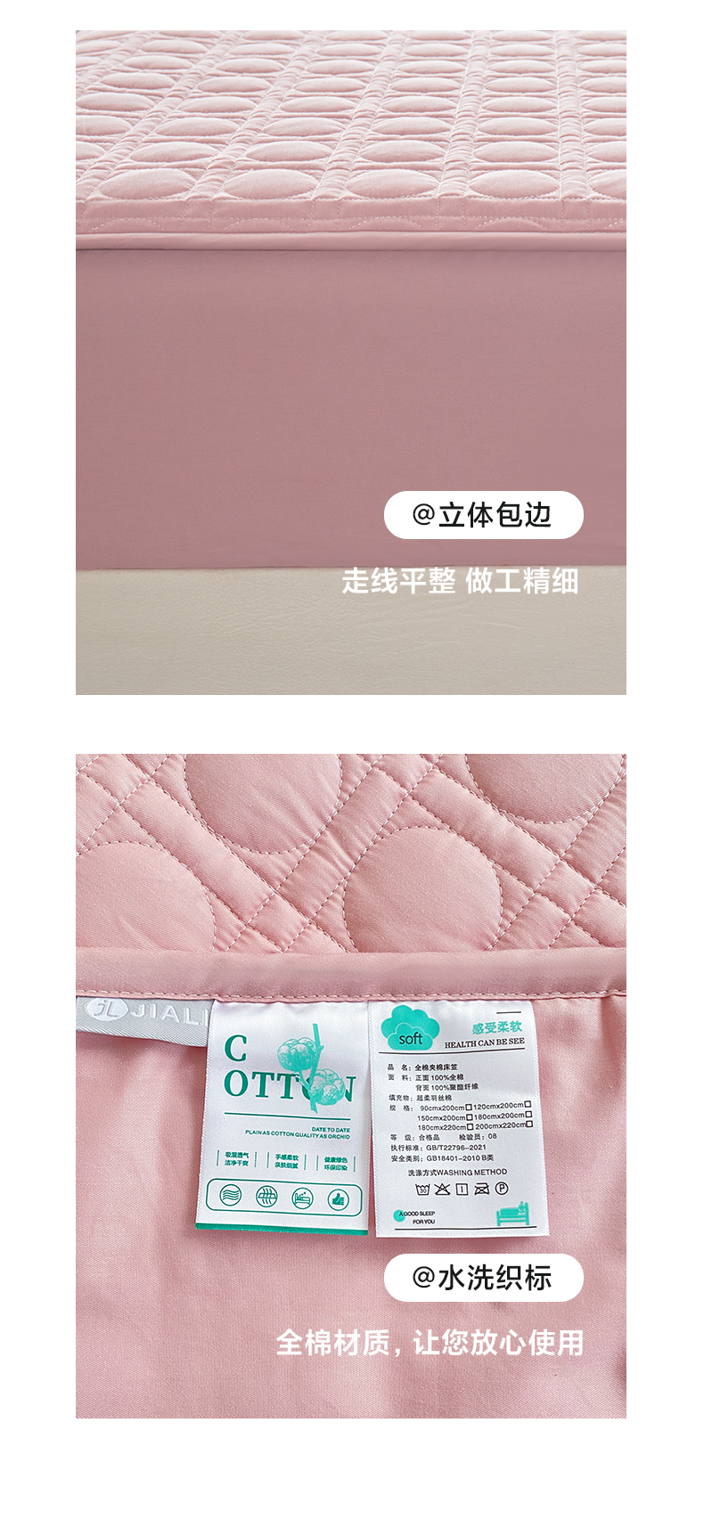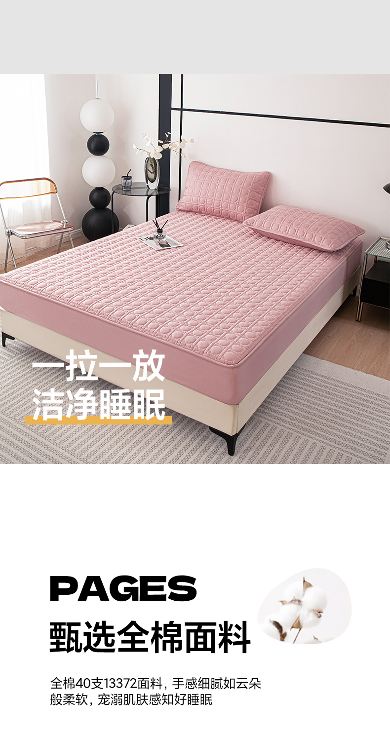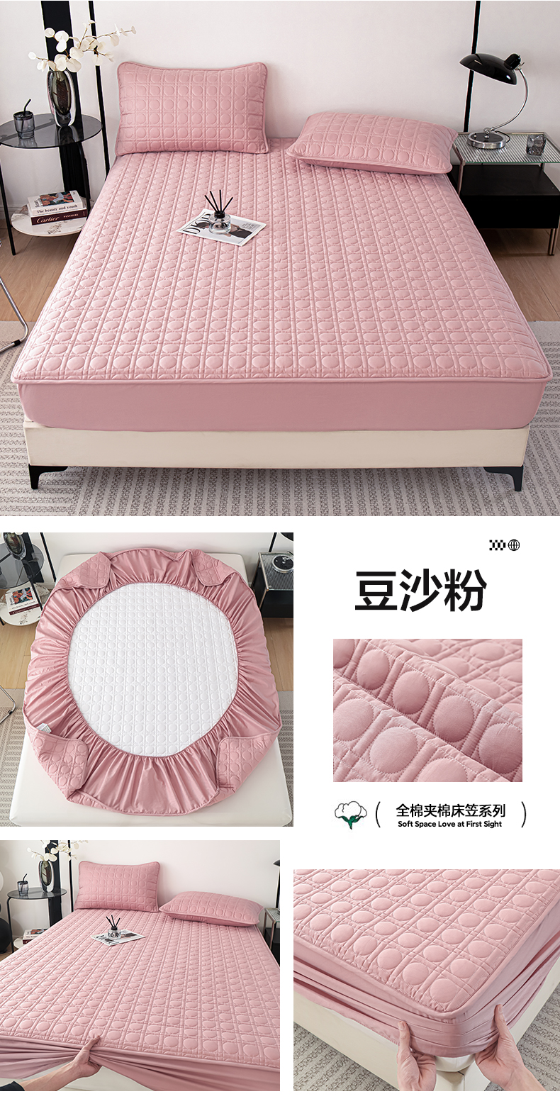 • 91家纺网 家纺一手货源 找家纺 佳笠家居 2025新款全棉纯棉夹棉床笠四季通用席梦思保护套床罩 豆沙粉